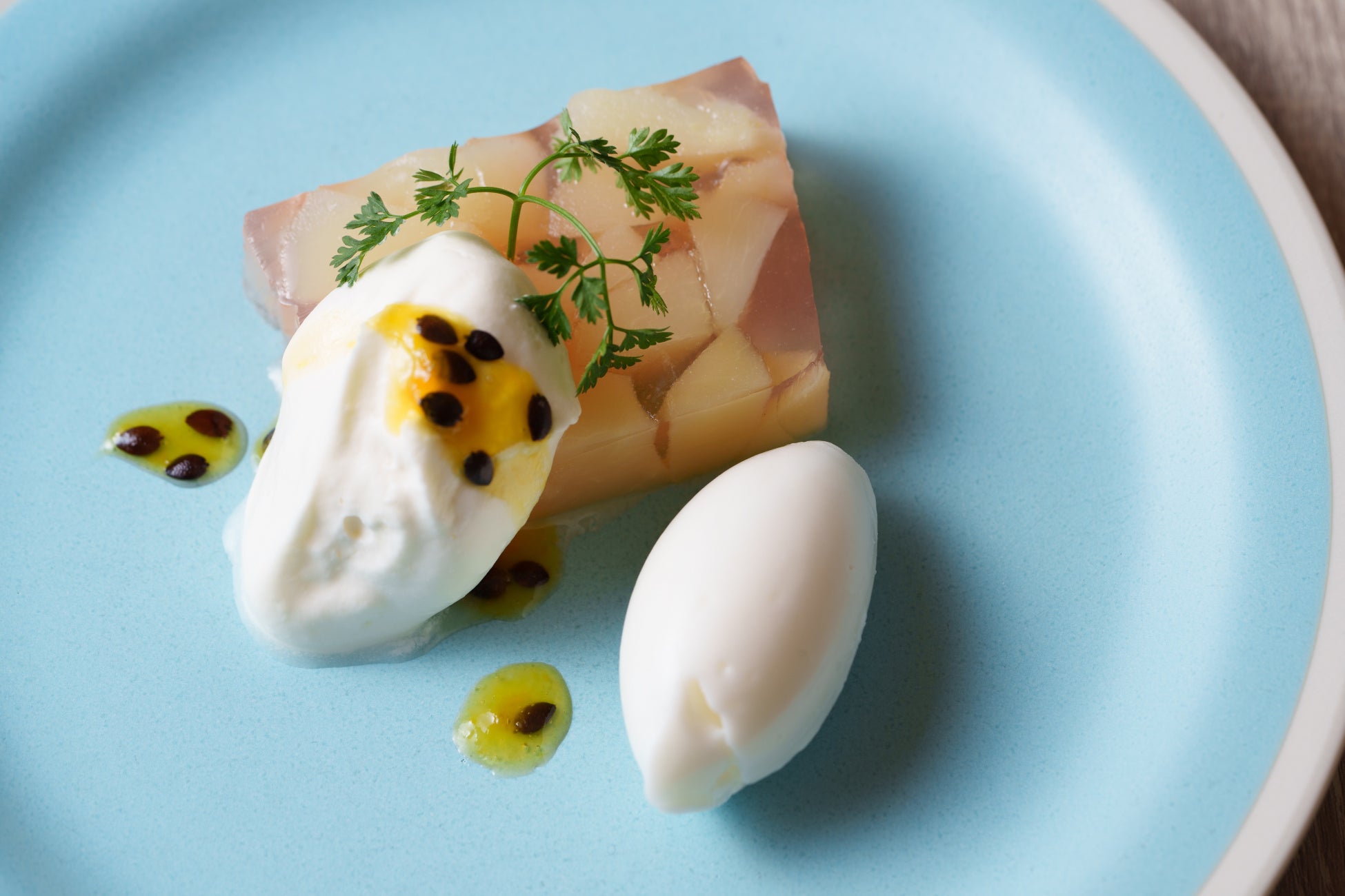 宮城県 富谷『EIGHT CROWNS』のハチミツとパッションフルーツの香るエスプーマ