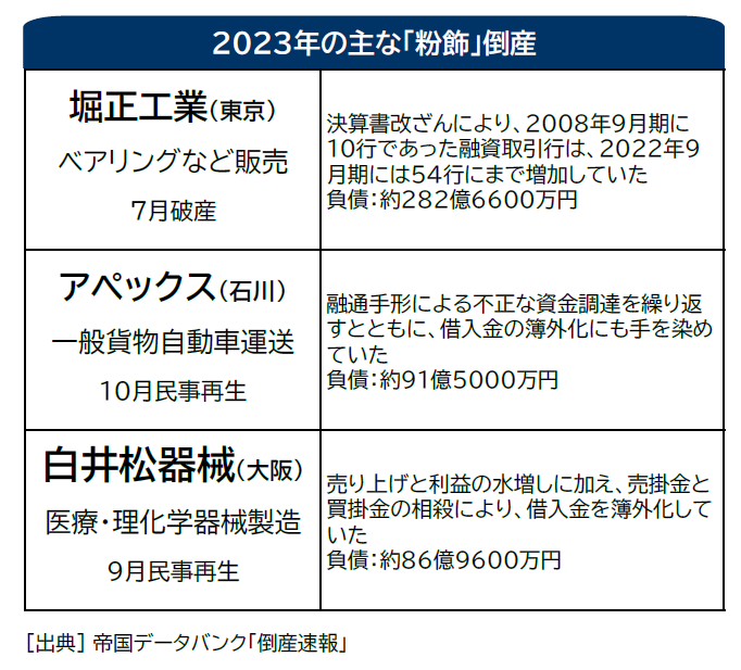 全体の倒産が増加傾向で推移するなか、コンプライアンス違反倒産も2年連続で前年を上回る高水準で発生した。倒産の抑制要因ともなった民間ゼロゼロ融資等の返済にあわせて、金融機関に対して追加支援を申し入れた際に粉飾決算などが発覚し、資金調達の道を断たれて行き詰まるケースが目立った。