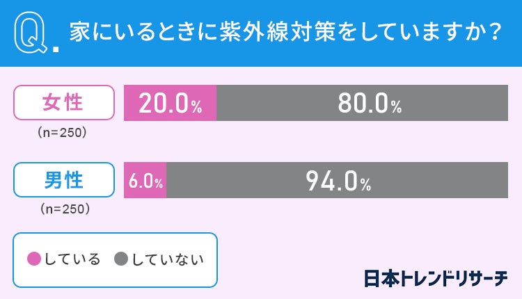 女性の20%が、家にいるときにも紫外線対策を「している」と答えました。