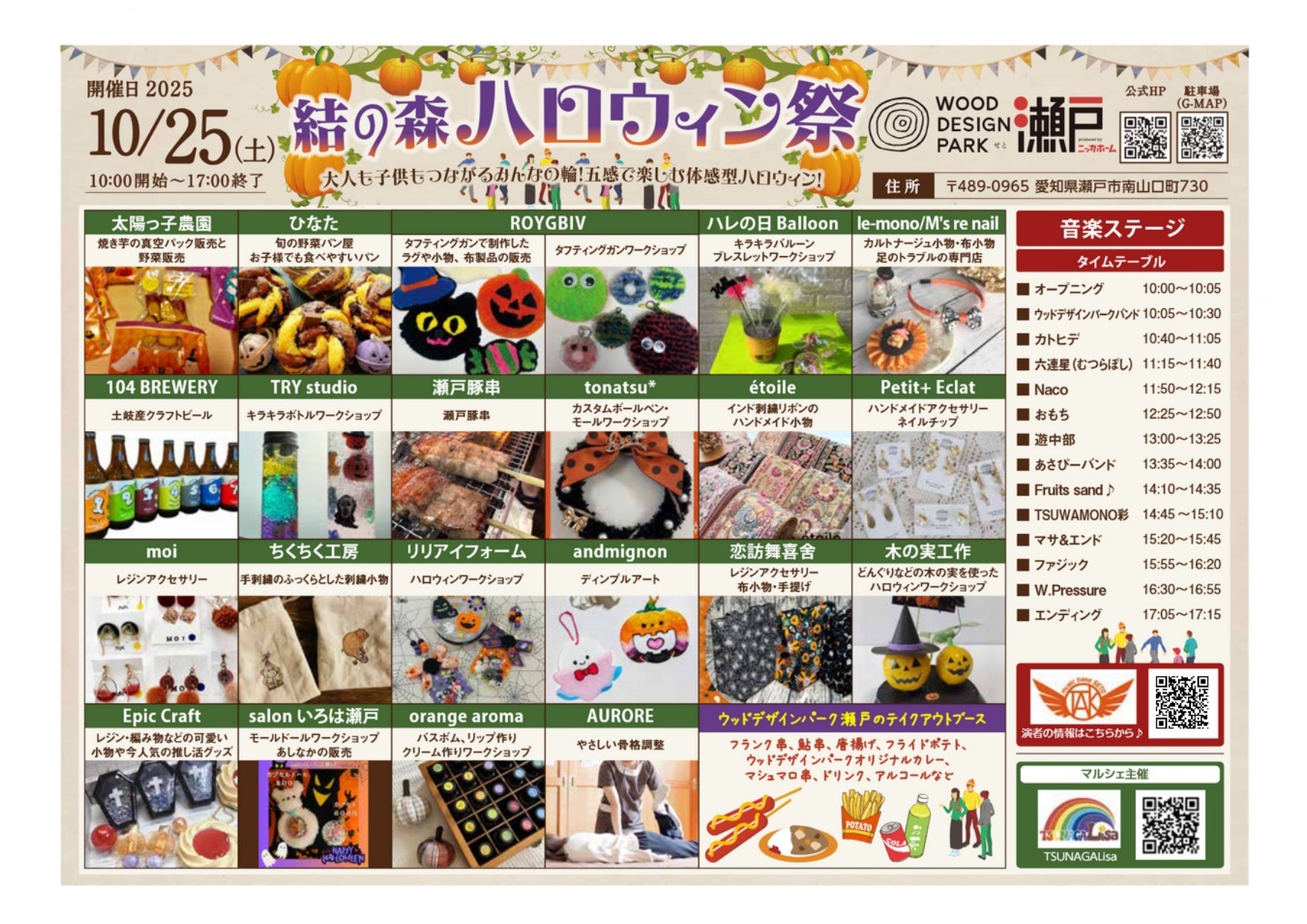 ウッドデザインパーク株式会社(本社:愛知県岡崎市)が運営する「ウッドデザインパーク瀬戸」は、2025年10月25日(土)開催の『結の森 ハロウィン祭』に合わせ、来場者を対象としたInstagramフォトコンテストを実施します。ハロウィンならではの仮装やフォトブース、出店の様子、家族写真など“その日の思い出”を投稿していただく企画です。投稿期間は10/25〜10/31、11/1に公式SNSで結果を発表します。