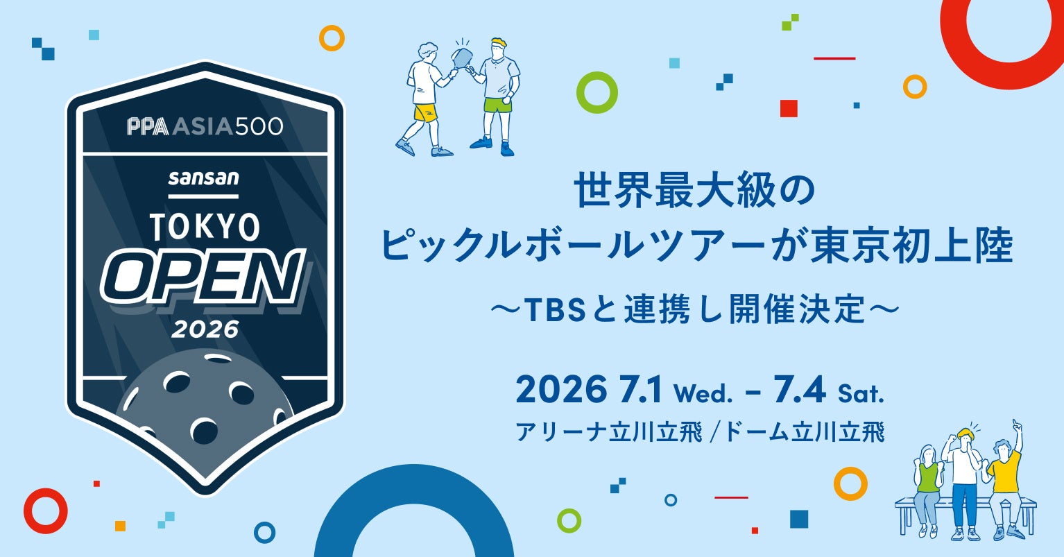 Sansan株式会社は、株式会社TBSホールディングスが主催し、2026年7月に東京・立川で開催されるピックルボールの国際大会「PPA ASIA 500 Sansan TOKYO OPEN 2026 Produced by TBS」にタイトルスポンサーとして特別協賛することをお知らせします。