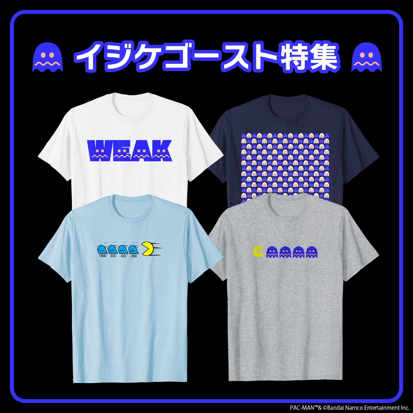 Amazon Merch on Demandにて販売中の「パックマン」アパレルに、イジケゴーストがフィーチャーされたデザインが登場します。1980年代当時のイラストを使用したものからユニークなデザインまで、ぜひお気に入りの1枚を見つけてください。
