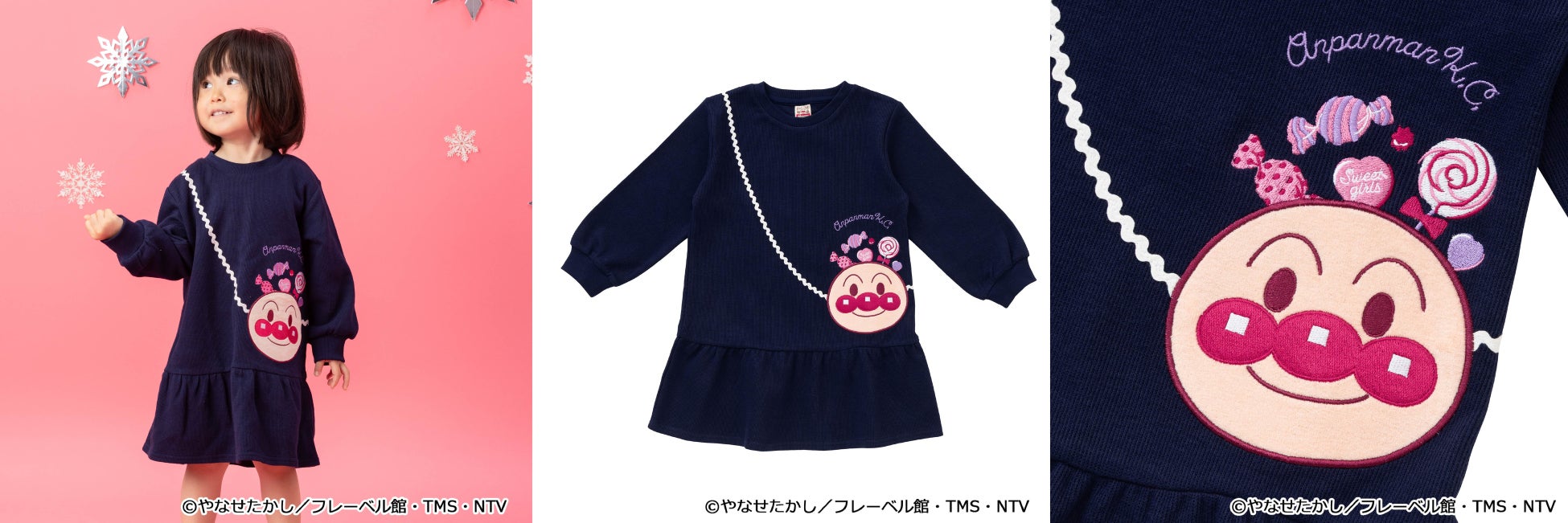アンパンマンのポシェット風デザインが可愛いワンピース。