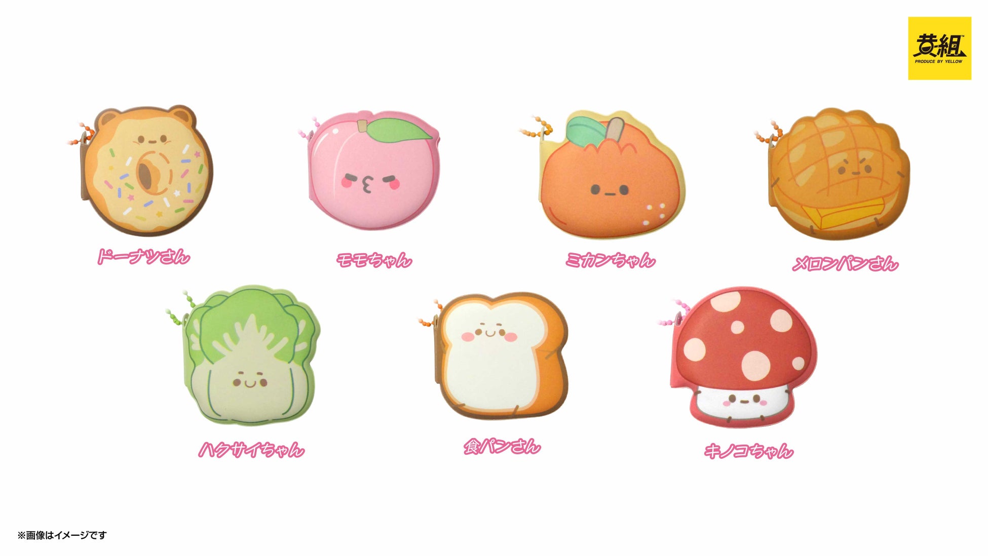 個性豊かな全7種のキャラクター: 食パンやメロンパンなどのフードモチーフに加え、ハクサイやキノコなどユニークなラインナップ。