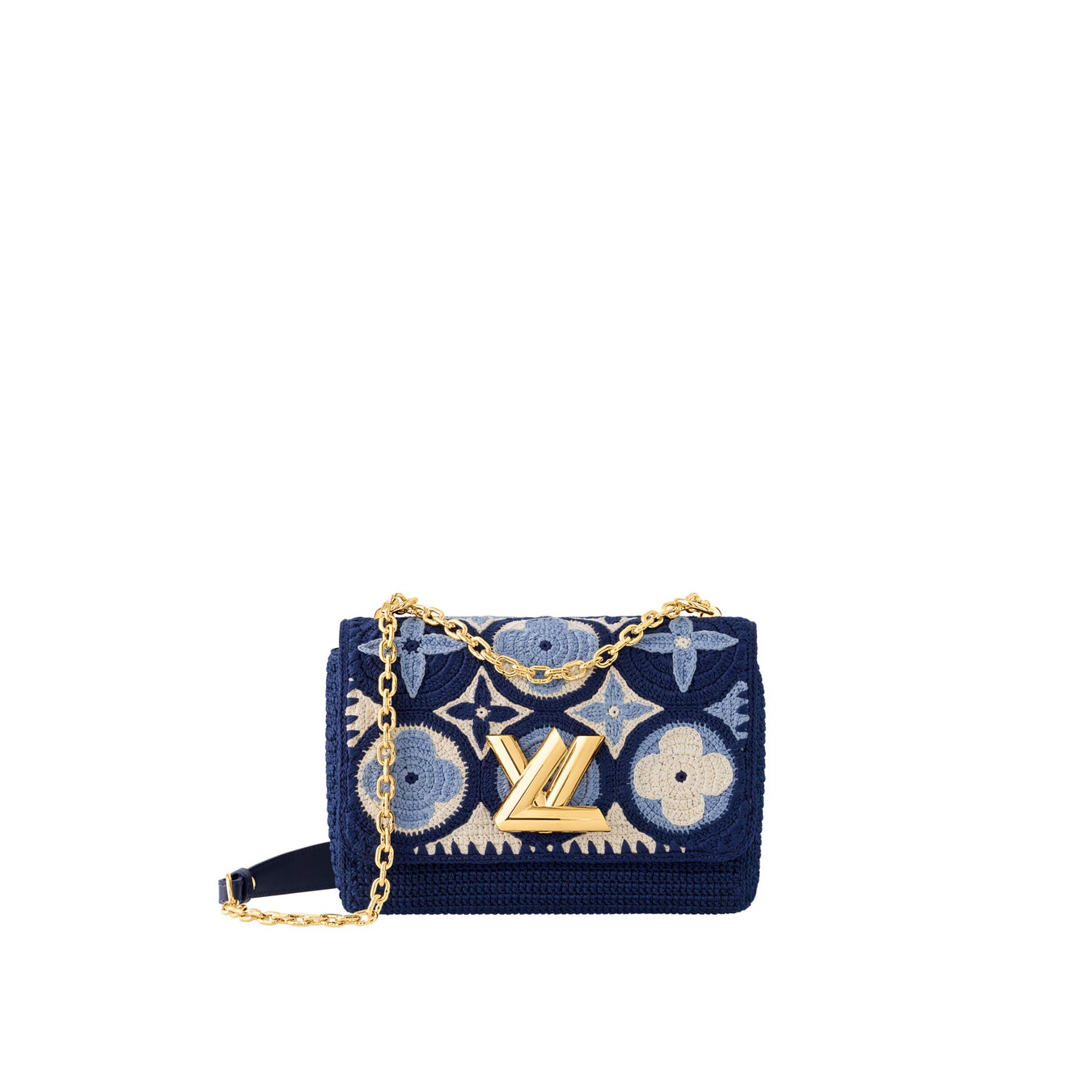 「バイ・ザ・プール」カプセル・コレクションならではのステートメントを放つ「ツイスト MM」。メゾンが誇るサヴォアフェール(匠の技)が際立ちます。1点1点異なる表情を見せる、ブルー & ホワイトのモノグラム・フラワー パターンを手作業で織り上げました。なめらかなレザーでライニングを施し、シグネチャーのLV ツイストロックとスライド式のロングチェーンをあしらった、夏の装いにさりげなくラグジュアリーな魅力を添えるバッグです。