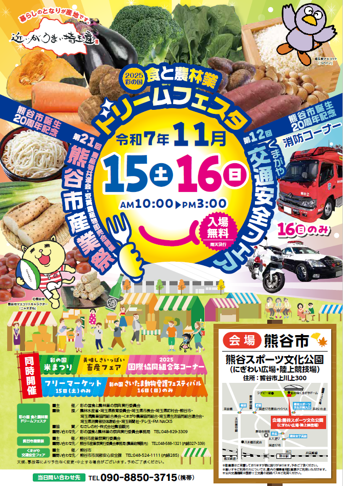 11月15日(土曜日)、16日(日曜日)の2日間、熊谷スポーツ文化公園のにぎわい広場において「2025彩の国食と農林業ドリームフェスタ」を開催します。