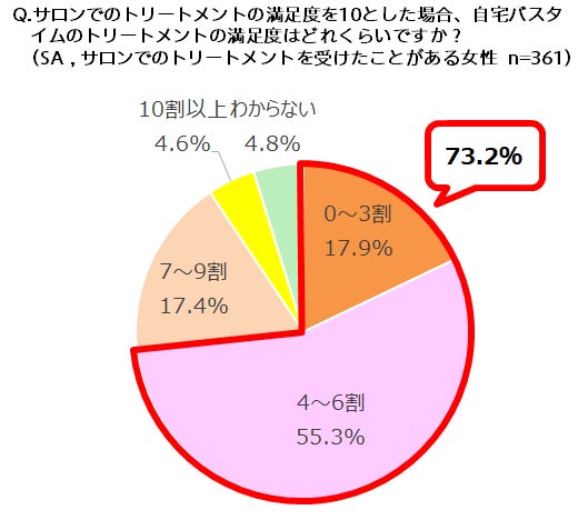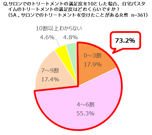 - 自宅バスタイムでのトリートメント、サロンの6割以下の満足度という女性が70%越え!