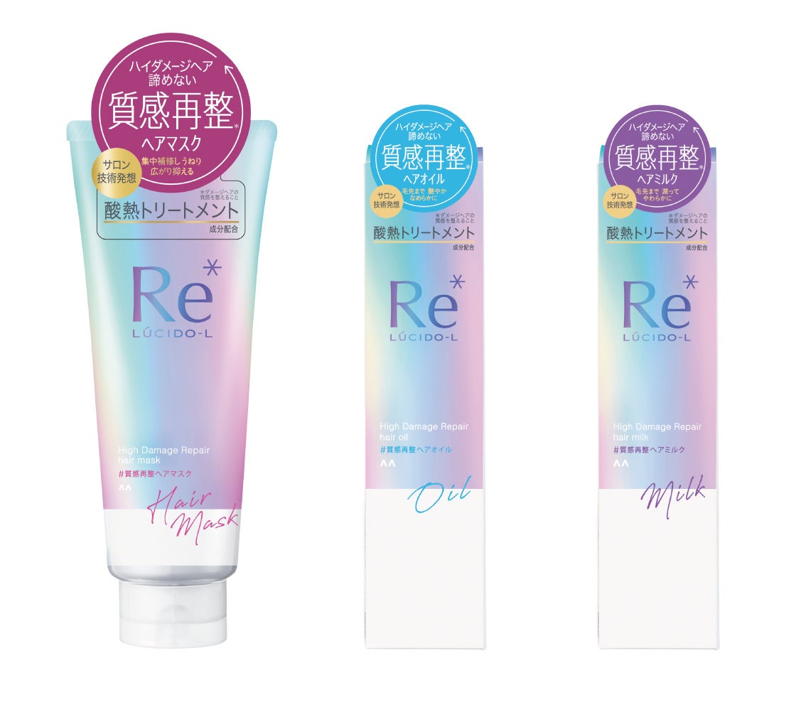 「ルシードエル 質感再整トリートメントシリーズ」は自宅バスタイムの週1~2回のスペシャルケアにぴったりの「#質感再整ヘアマスク」と毎日使える「#質感再整ヘアオイル」「#質感再整ヘアミルク」の3つのラインアップ。ダメージヘアの質感を整える酸熱トリートメントを自宅で体感できます。