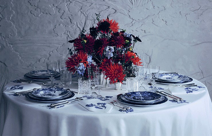 フランスのサヴォワールフェールとディオールスタイルの象徴であり、マリア・グラツィア・キウリによって再解釈が加えられてきた「トワル ドゥ ジュイ」。その野性的なモチーフはタイムレスなディオール メゾンのコレクションを一層際立たせています。今回、ディナープレートやデザートプレート、ブレッドプレートのほか、サラダボウルやスープチュリーン、ティー、コーヒーセットなど、クリスチャン・ディオールのキーカラーにオマージュを捧げる、ブルースケッチで彩られたバリエーションが新たに登場。このコレクションは、リモージュ磁器からなり、エナメル加工から極めて繊細な絵付けを要する「リーフ デコレーティング」の工程まで、すべて手作業で行われています。ディオールが讃えるおもてなしの美学を体現するこのコレクションは、ディオール メゾン取り扱いディオールブティックおよび公式オンラインブティックにてお求めいただけます。