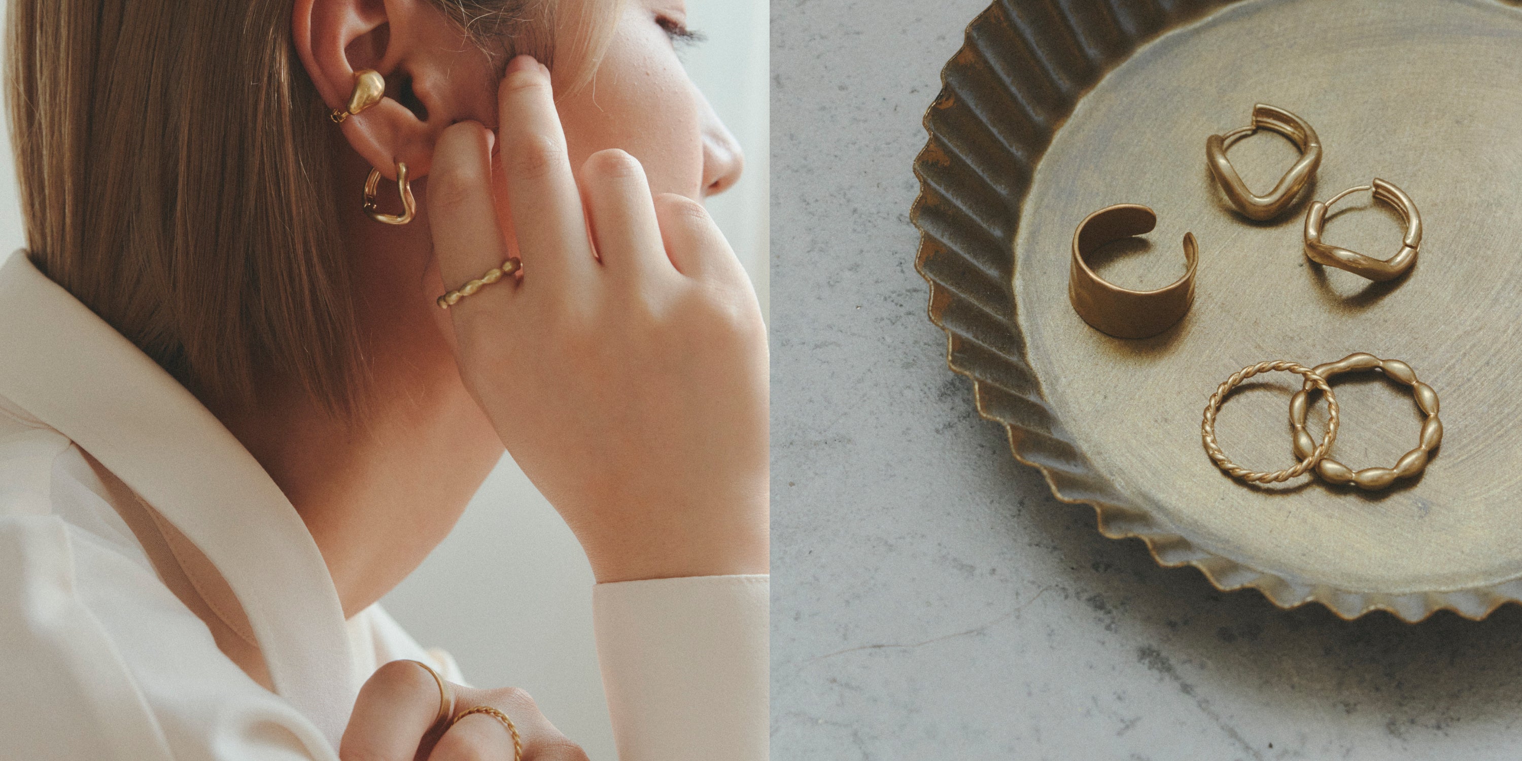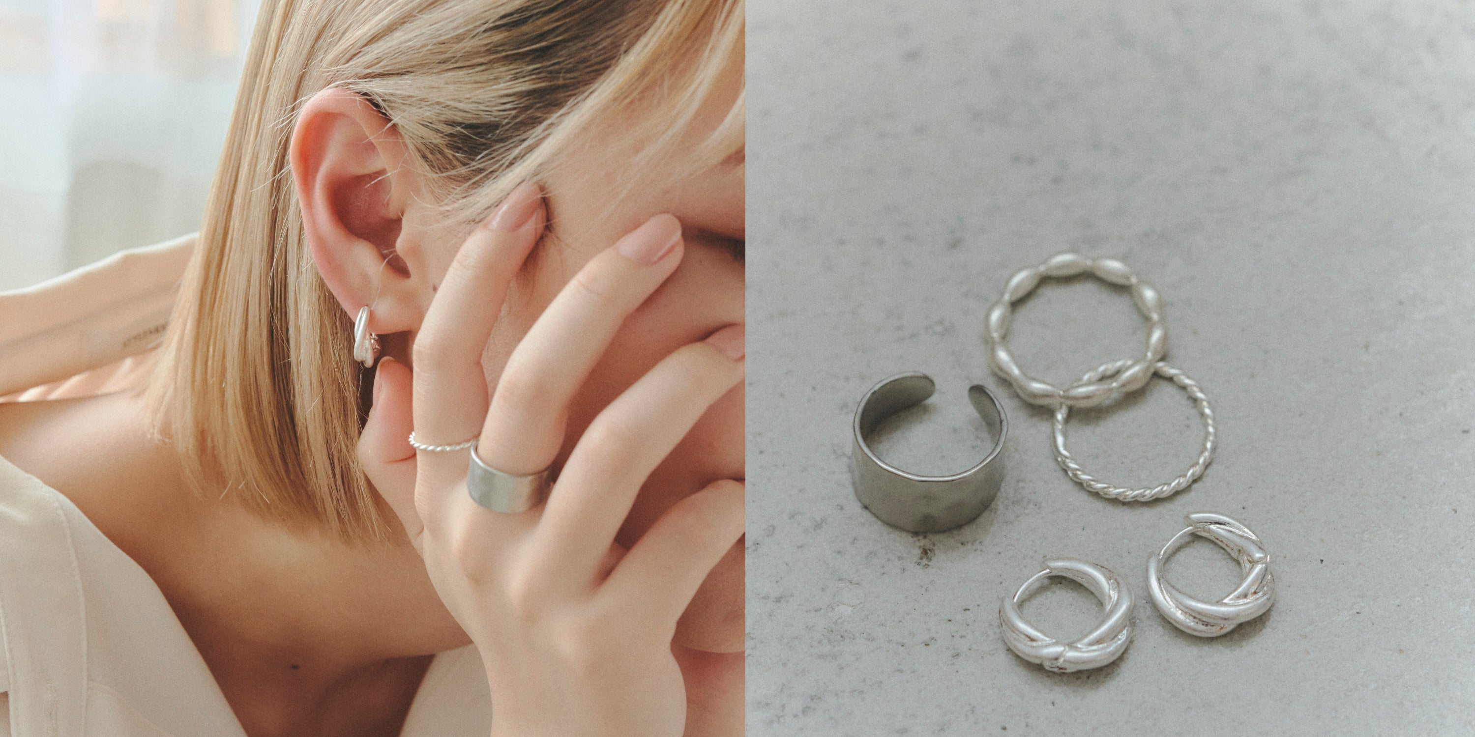 ピアスのように着ける場所の選択肢が広く、イヤリングのようにも着けられるイヤーカフは、ピアスとイヤリング両方の魅力を兼ね備えているとも言える万能アイテムです。