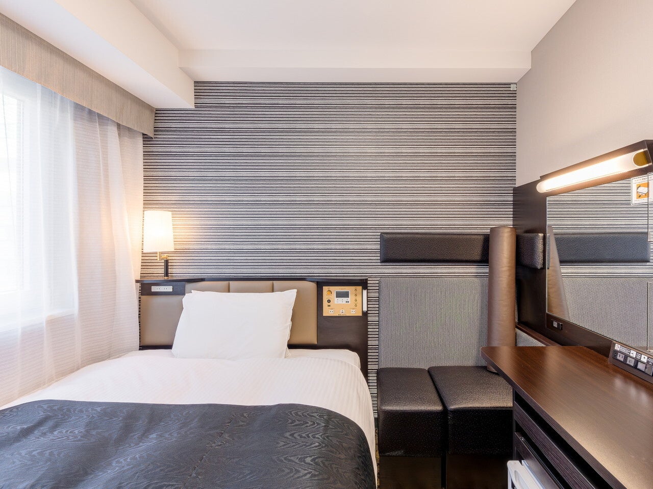 全218室(全室禁煙) ・シングルルーム 99室 (通常料金15,000円~ / 1,400mm幅 / 1ベッド) ・ダブルルーム 51室 (通常料金25,000円~ / 1,400mm幅 / 1ベッド) ・コージーシングルルーム 26室 (通常料金16,000円~ / 1,400mm幅 / 1ベッド / ソファ付) ・コージーダブルルーム 13室 (通常料金26,000円~ / 1,400mm幅 / 1ベッド / ソファ付) ・コネクトルーム 13組26室 (通常料金26,000円~ / 1,400mm幅 / 2ベッド / 最大4名まで利用可能) ・バリアフリールーム 3室 (1,400mm幅 / 1ベッド) |