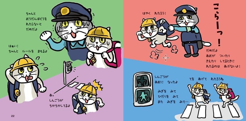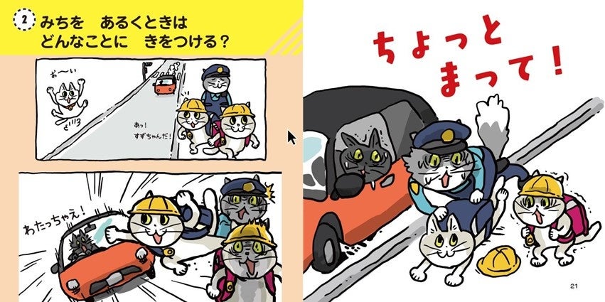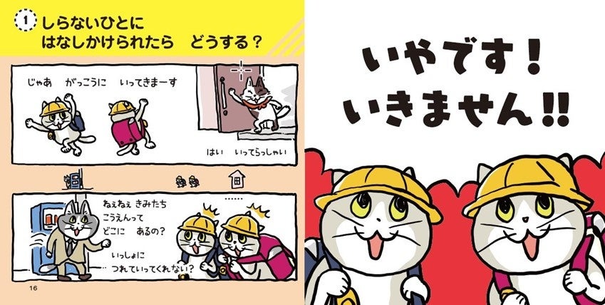 イラストは『仕事猫』『電話猫』などのコミカルなキャラクターでおなじみのくまみねさんが書きおろしているため、危険な場面の描写もこわがることなく、「自分を守れる」知識を得ることができます。