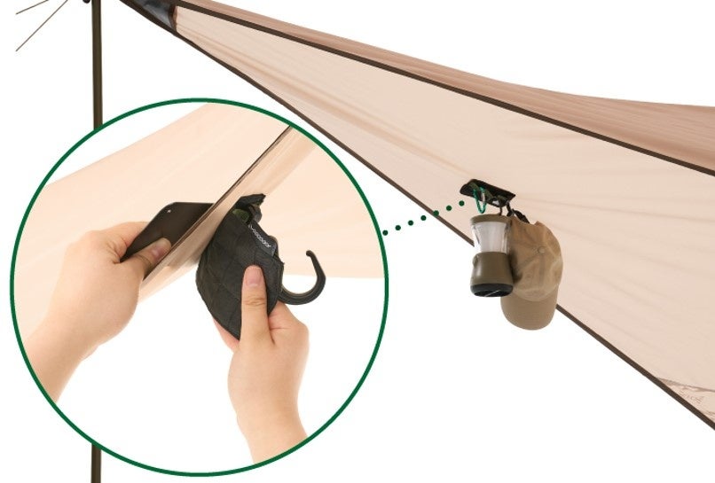 チェアやテント、タープ、キャリーカートなどの生地に挟むだけで、手軽に吊り下げ場所を確保できるマグネット式の小物吊り下げ用ループ。