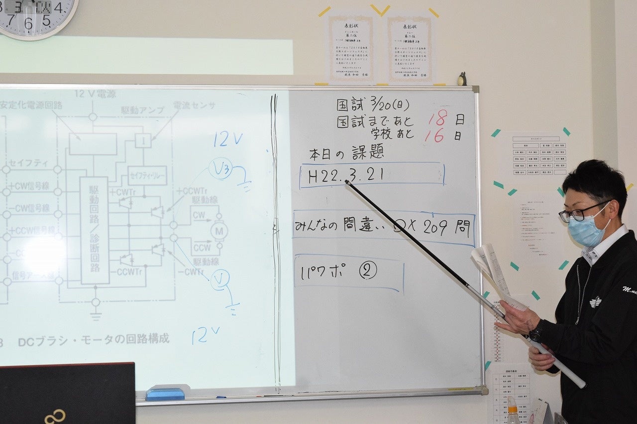 今回受験した本校1級自動車工学科4年生は2022年3月で、本校を卒業し、4月からは社会人として就業しているため、試験対策は就業後や休日、G.W.期間を中心に実施。