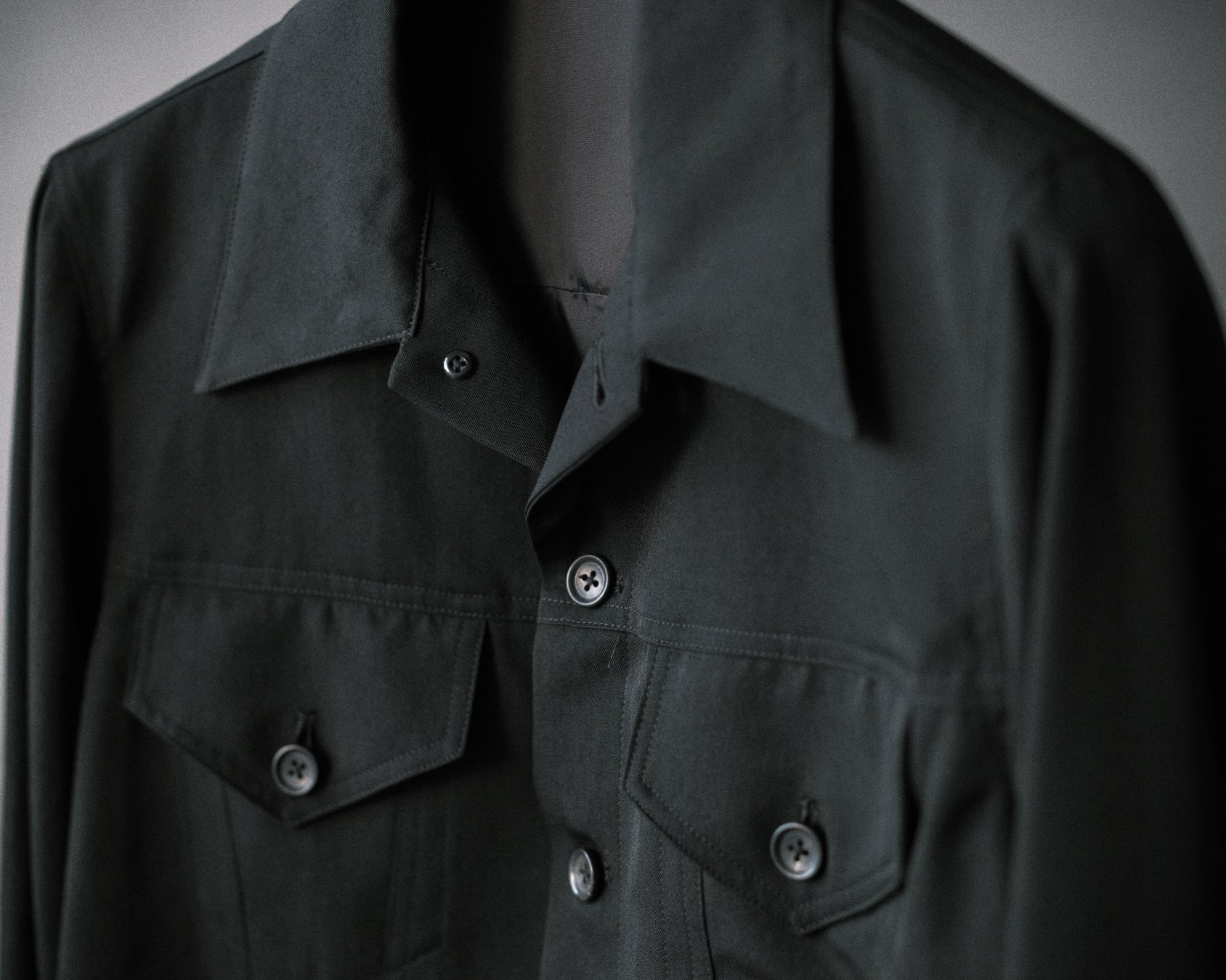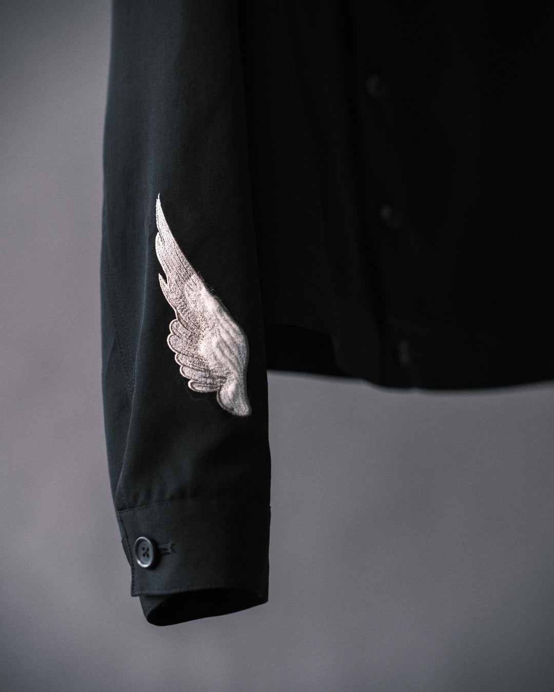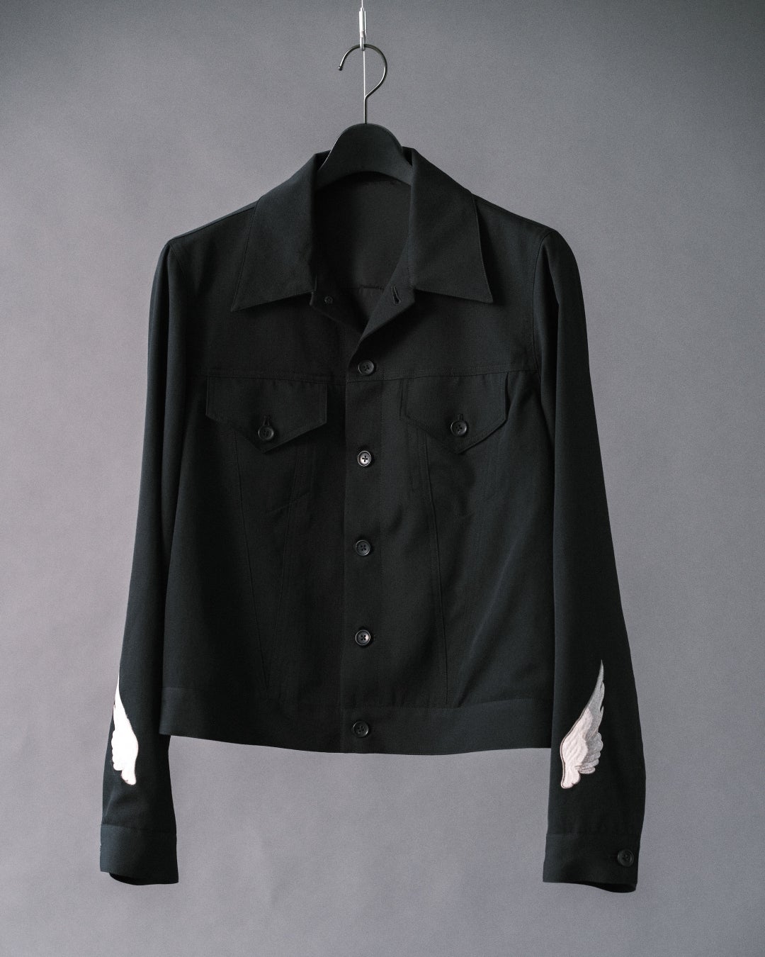Yohji Yamamoto POUR HOMMEの象徴的な素材であるウールギャバジンに繊細な刺繍を施し、時を経ても変わらないデザインの魅力が再構築された特別なアイテムです。