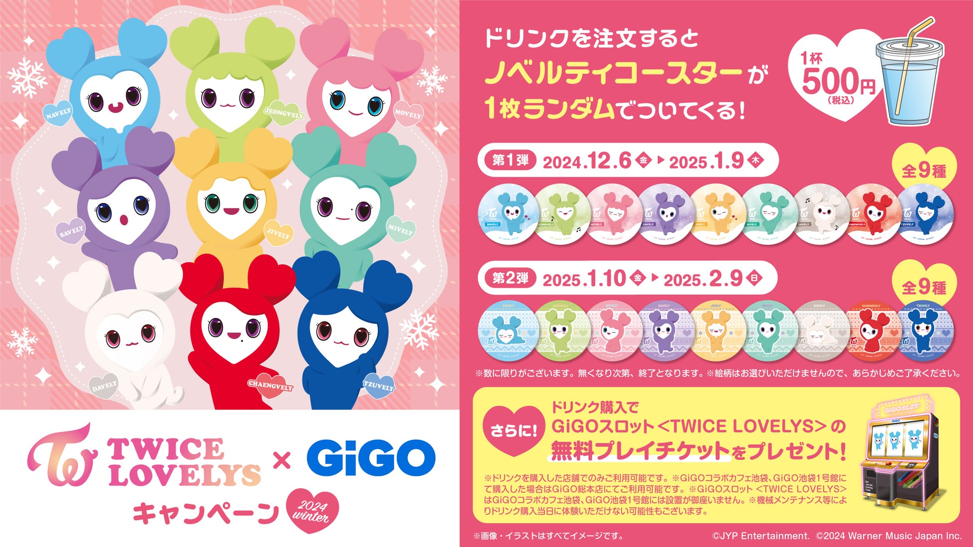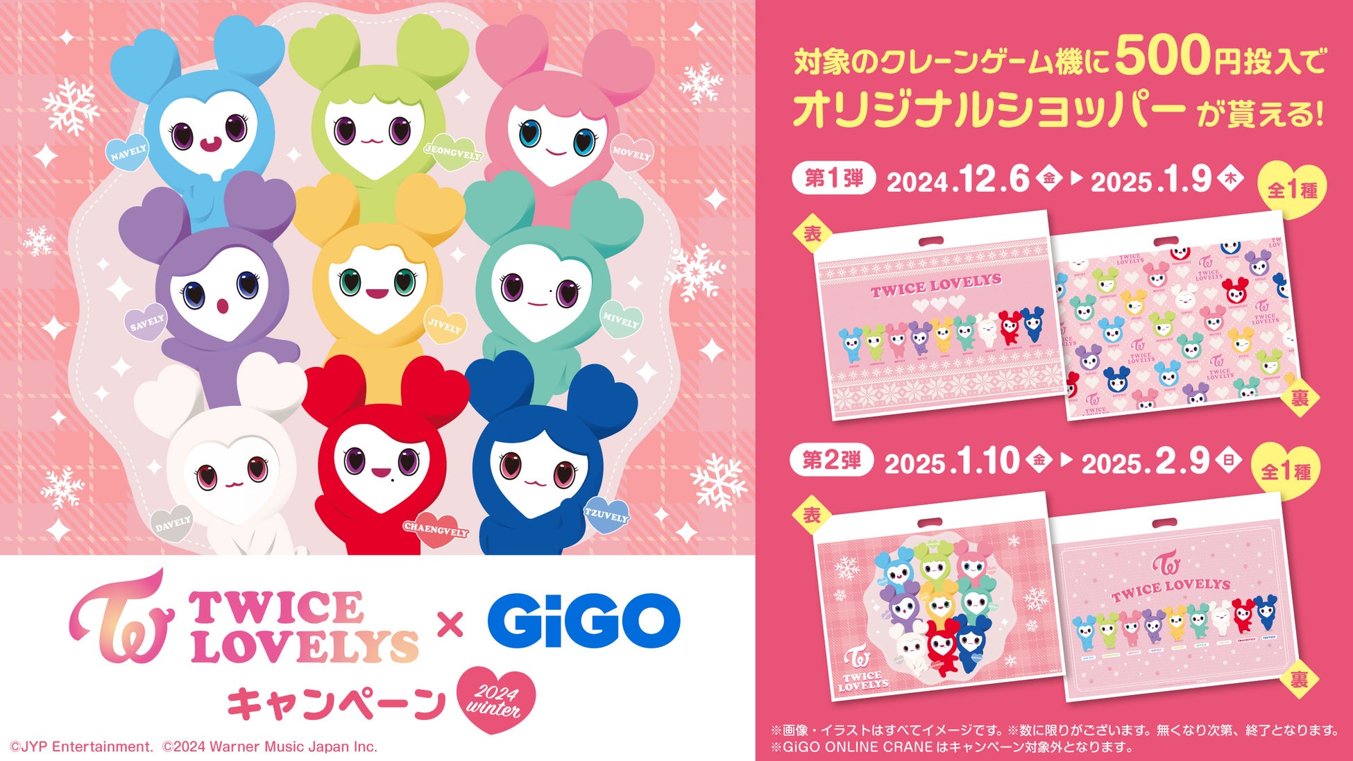 TWICE LOVELYS×GiGOキャンペーン 2024 WINTER 開催のお知らせ 開催期間:2024年12月6日(金)~2025年2月9日(日)