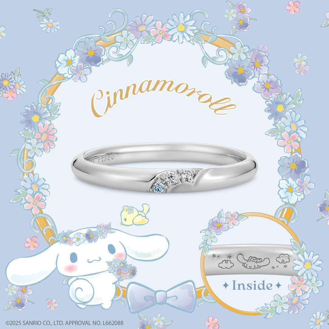 【サンリオキャラクターズ】シナモロール。「シナモン」が雲の上をふわふわと飛んでいるイメージのマリッジリング(結婚指輪)2デザイン。7月22日(火)発売