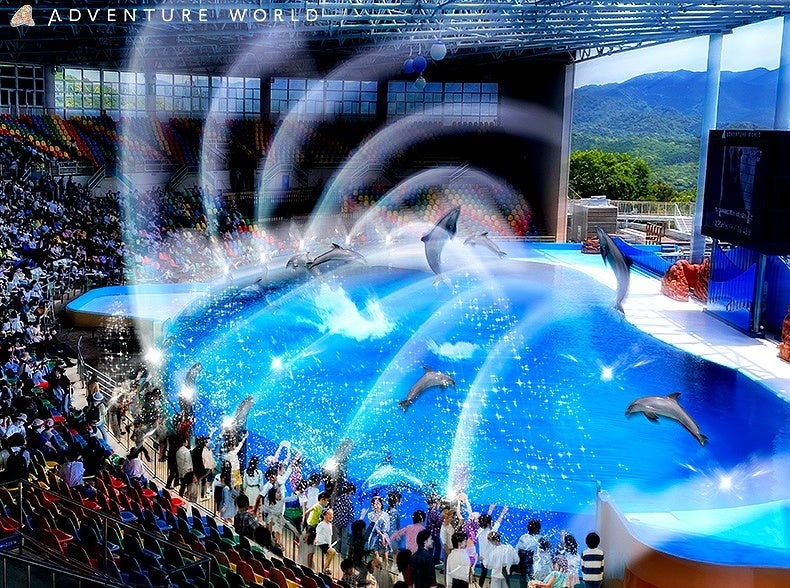 噴水とイルカたちがコラボレーションしたパフォーマンスを実施!
