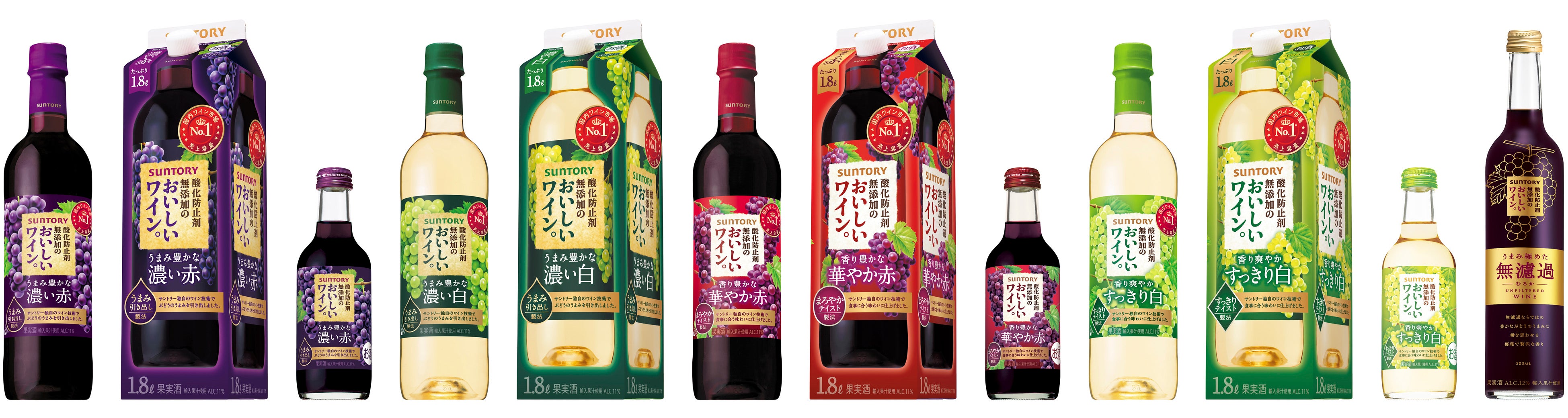 サントリー(株)は、「酸化防止剤無添加のおいしいワイン。」4種をリニューアル※2し、2月上旬以降順次、全国で新発売します。また、「酸化防止剤無添加のおいしいワイン。〈無濾過〉」を3月7日(火)より全国で新発売します。
