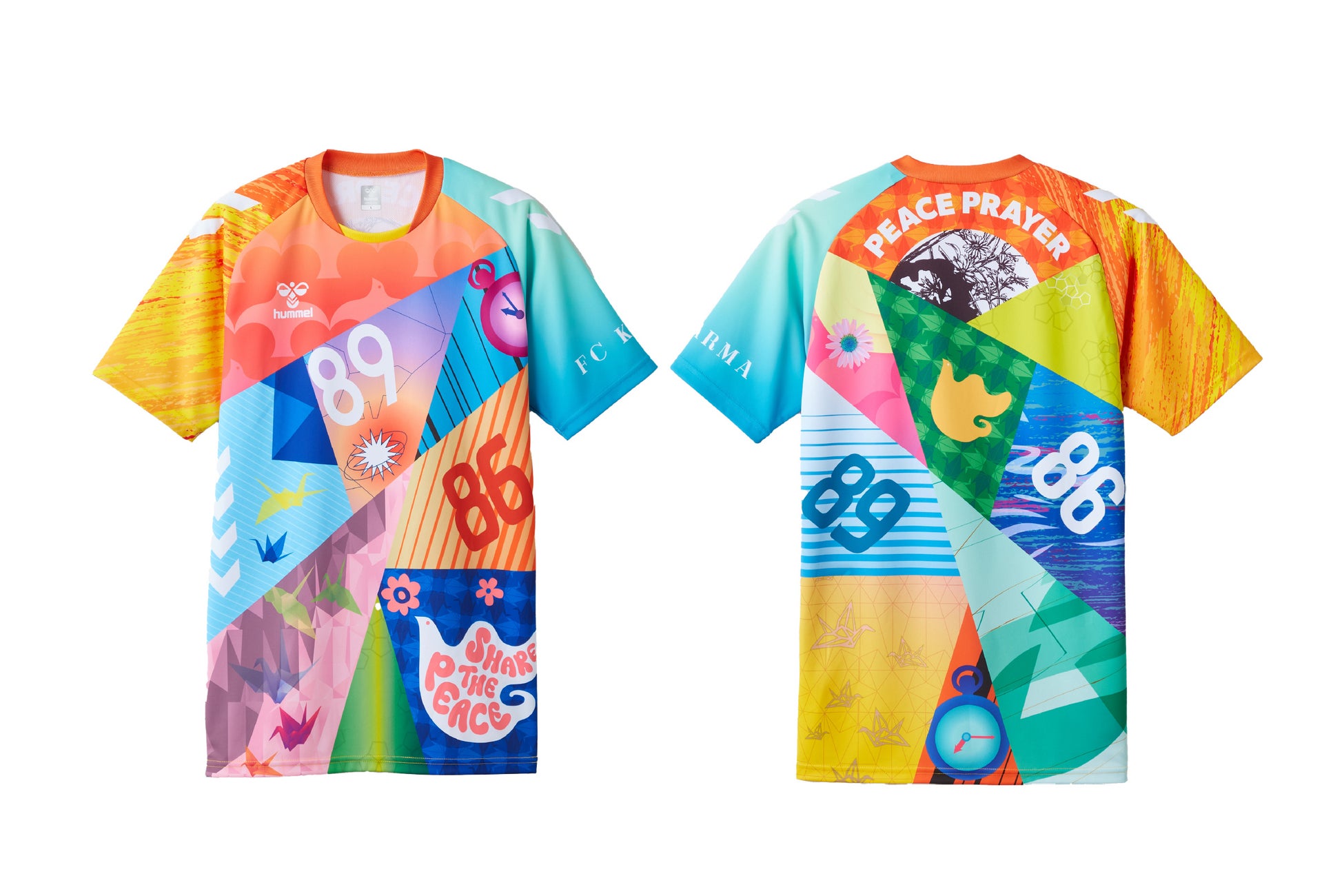 ヒュンメルは2015年に当時ユニフォームサプライヤーだったV・ファーレン長崎と平和祈念ユニフォームを発表。以降10年で11種32枚のピースユニフォームを製作してきました。今年の寄付はヒュンメルがこの10年にわたりつくってきたピースユニフォームを組み合わせたマッシュアップユニフォームの売上から実施。7月のピースマッチの記者会見時に広島県サッカー協会に寄付を行いました。