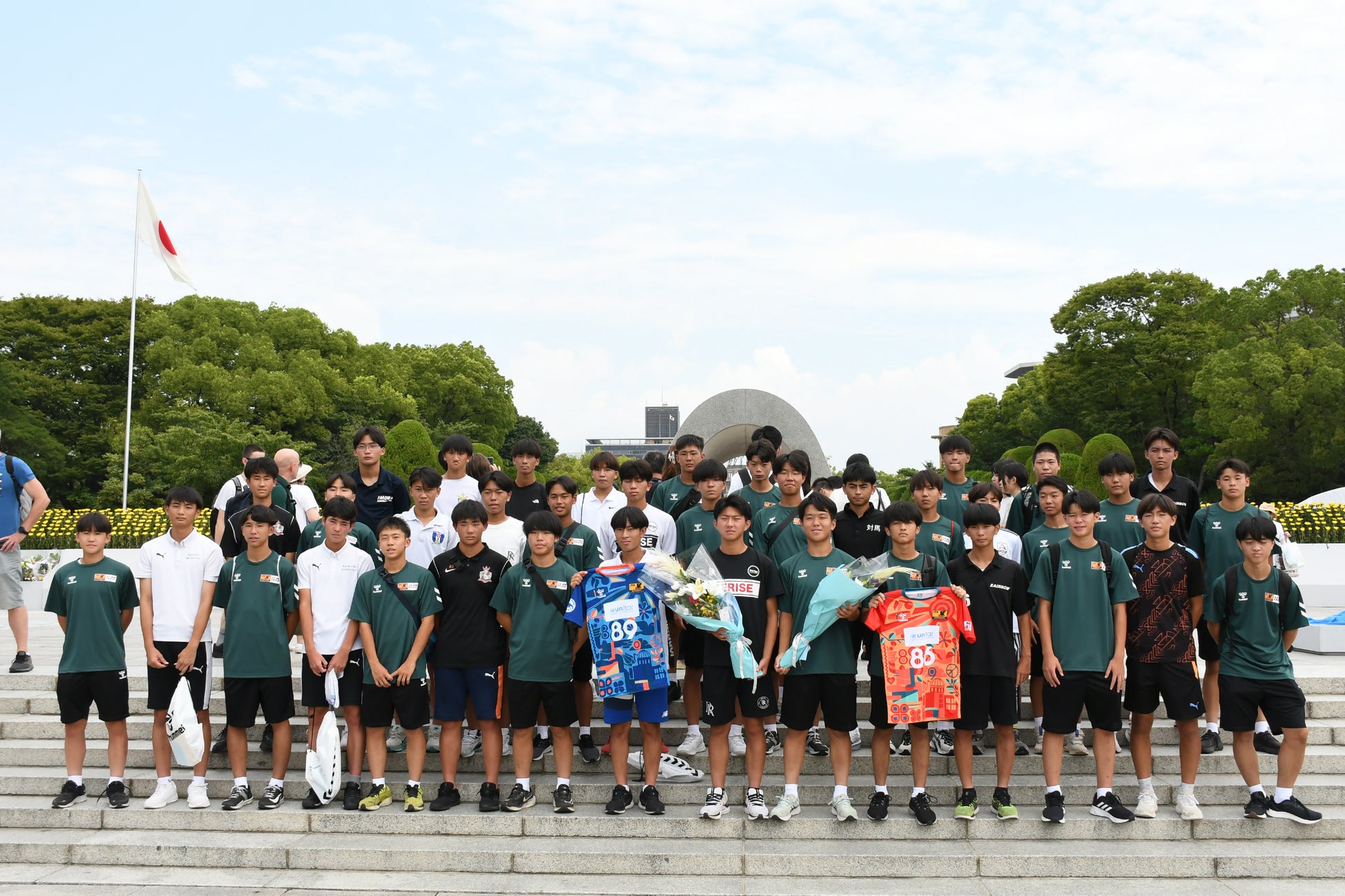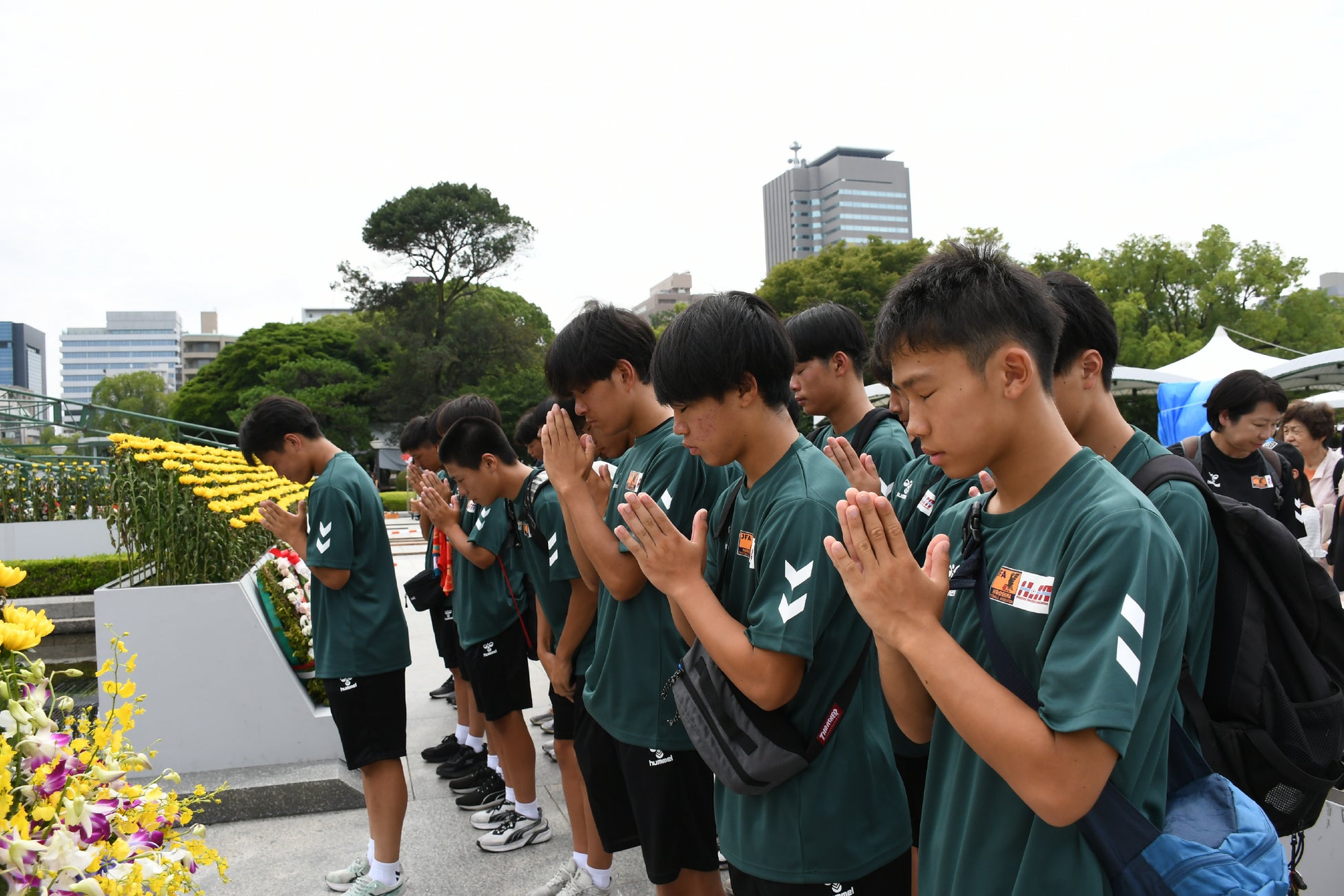 広島の村上監督は、「久々に平和公園に来て、戦争の悲惨さを改めて学びました。サッカーができることは当たり前じゃない。車で送ってくれるのも、審判がいるのも、スパイクを買ってもらえるのも全部そう。スポーツに限らず、その想いを持ち続けてほしい」と話しました。