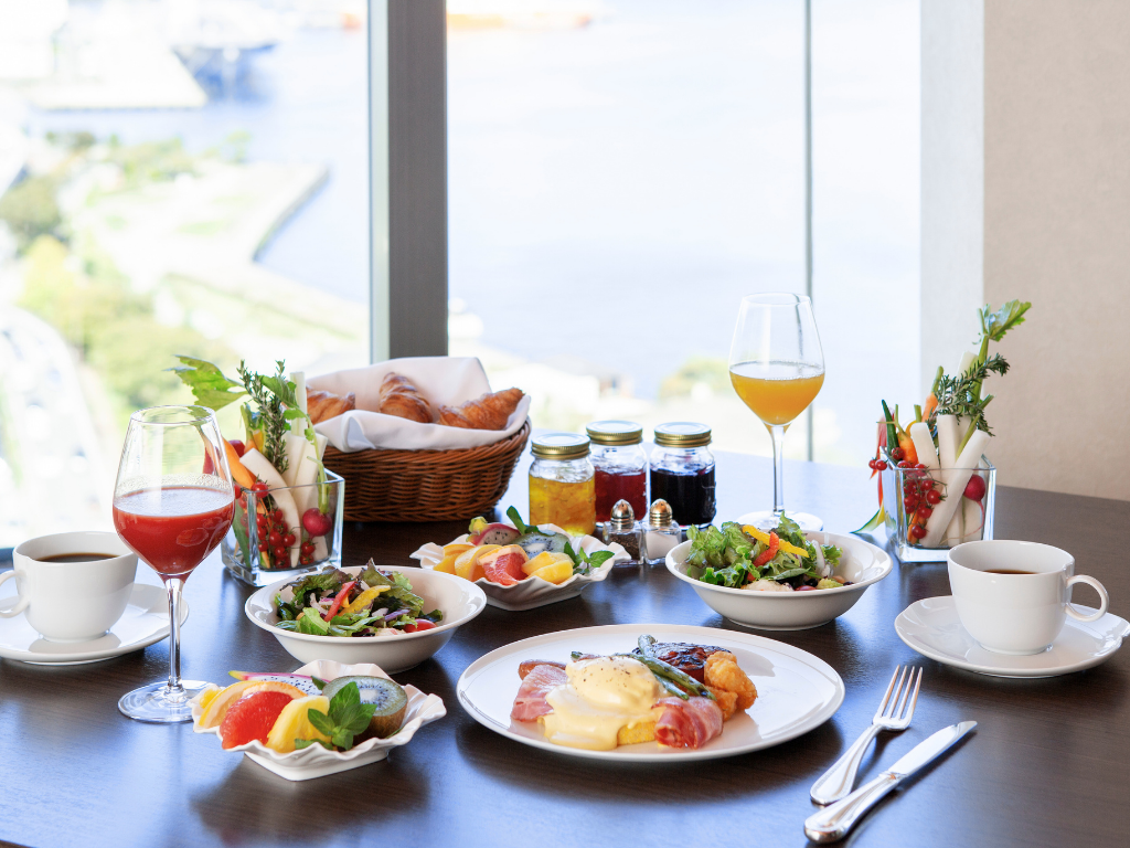 19階フレンチレストラン「ビストロ・ブルゴーニュ」では、唯⼀無⼆の横須賀港の眺望とともに、地産地消の⾷材を使ったフレンチをお楽しみいただけます。