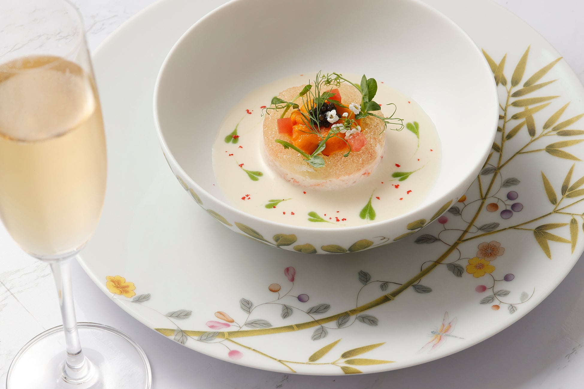 さらに、岸氏と中宇祢がフランス料理シェフとして歩んできた半生において象徴的な存在でもある「テタンジェ」のシャンパーニュで乾杯し、晩餐会の幕を開けます。当ホテルのソムリエが厳選した上質な赤・白ワインも取り揃え、洗練された味わいが繊細かつ力強い料理と絶妙に調和。特別な一夜にふさわしいマリアージュをご堪能いただけます。