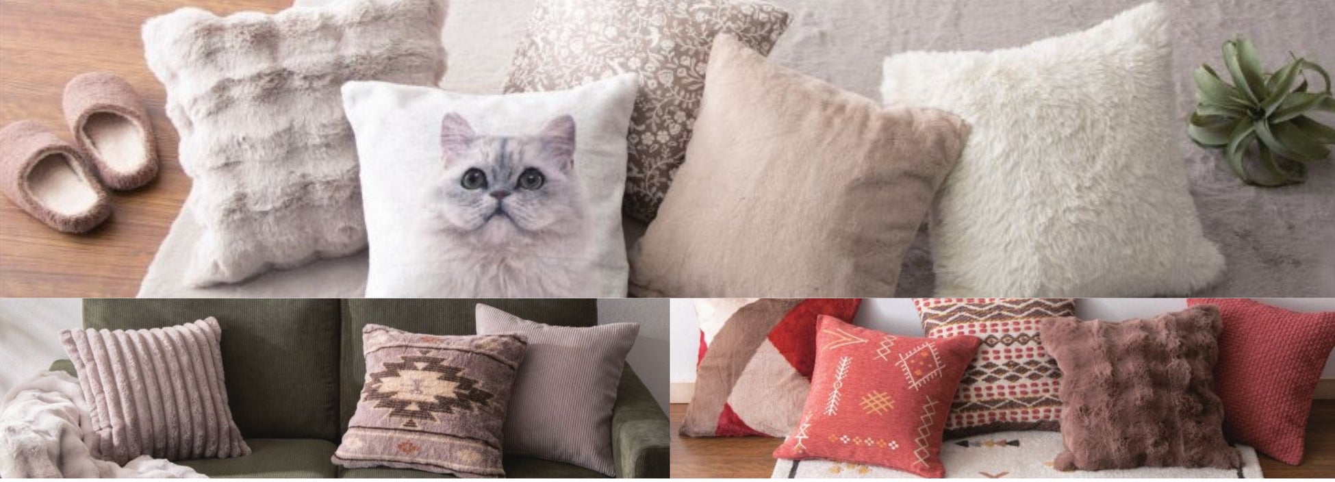 ニトリ店舗・ニトリネットでは、上記以外にも秋冬のお部屋を彩るクッションカバーを各種取り揃えております。