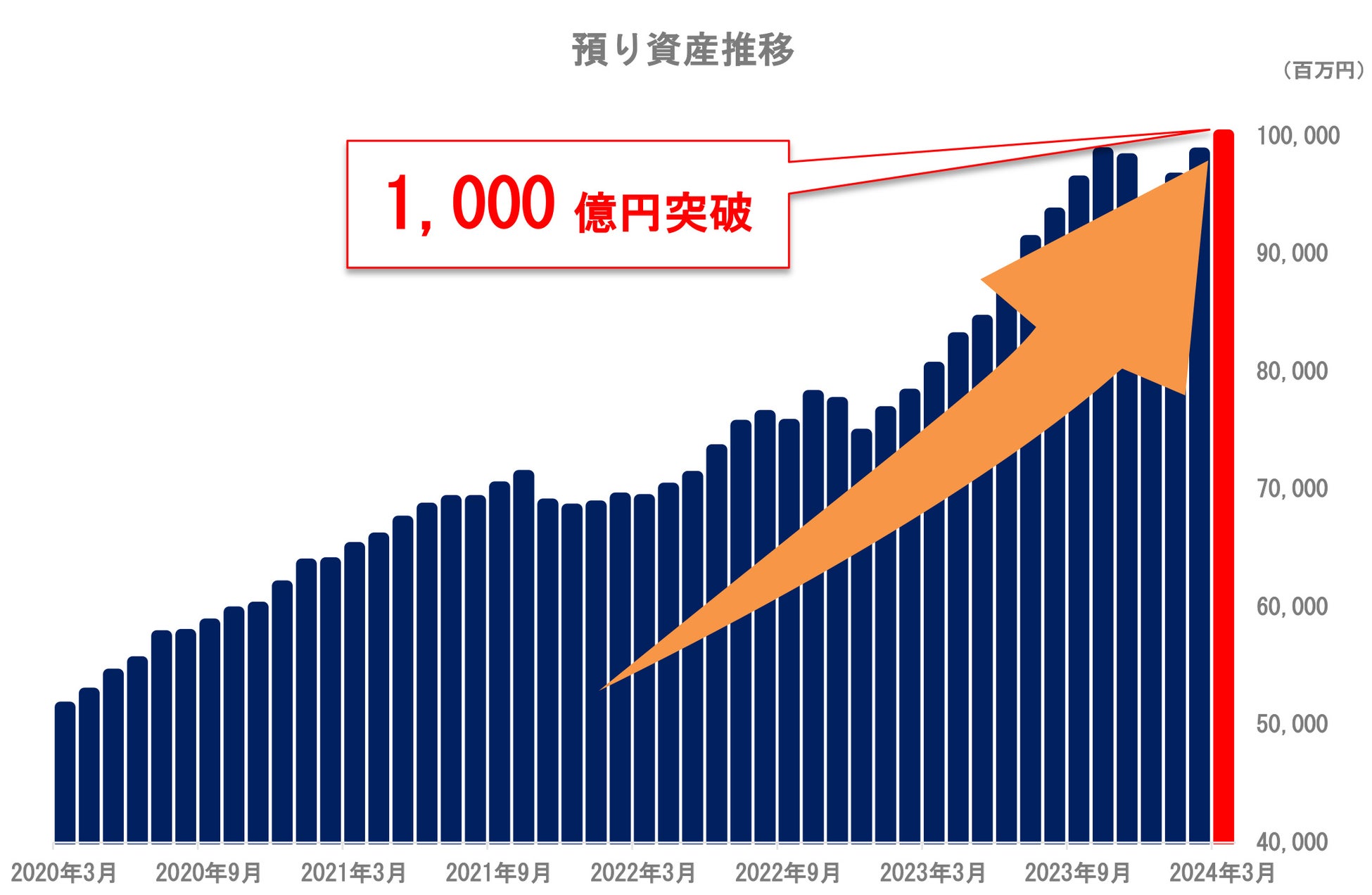 こうした取り組みを継続し、数多くの方々からご支持いただいた結果、預り資産1,000億円の大台を突破することとなりました。これもひとえに皆様のご愛顧の賜物と心より感謝申し上げます。
