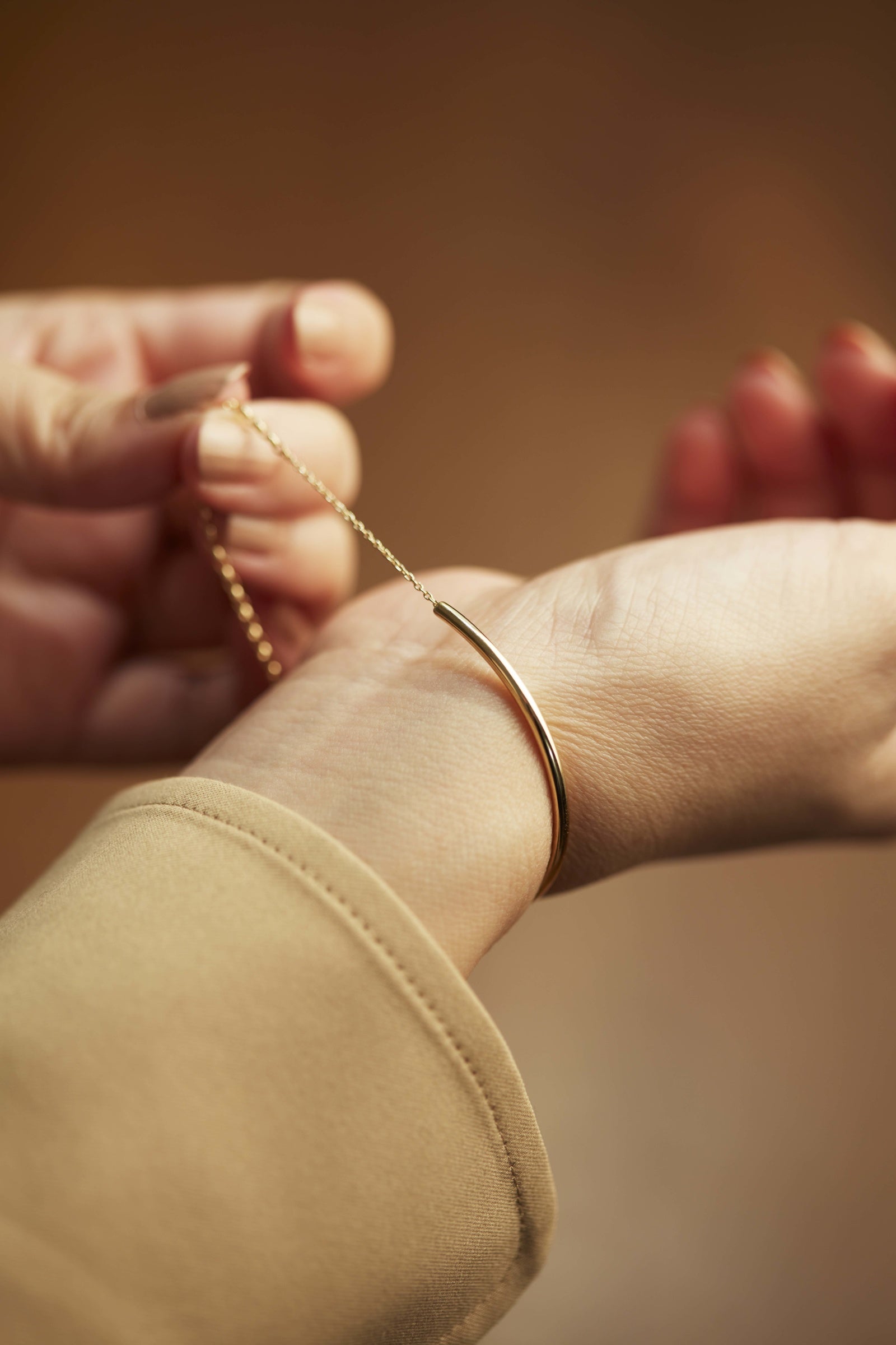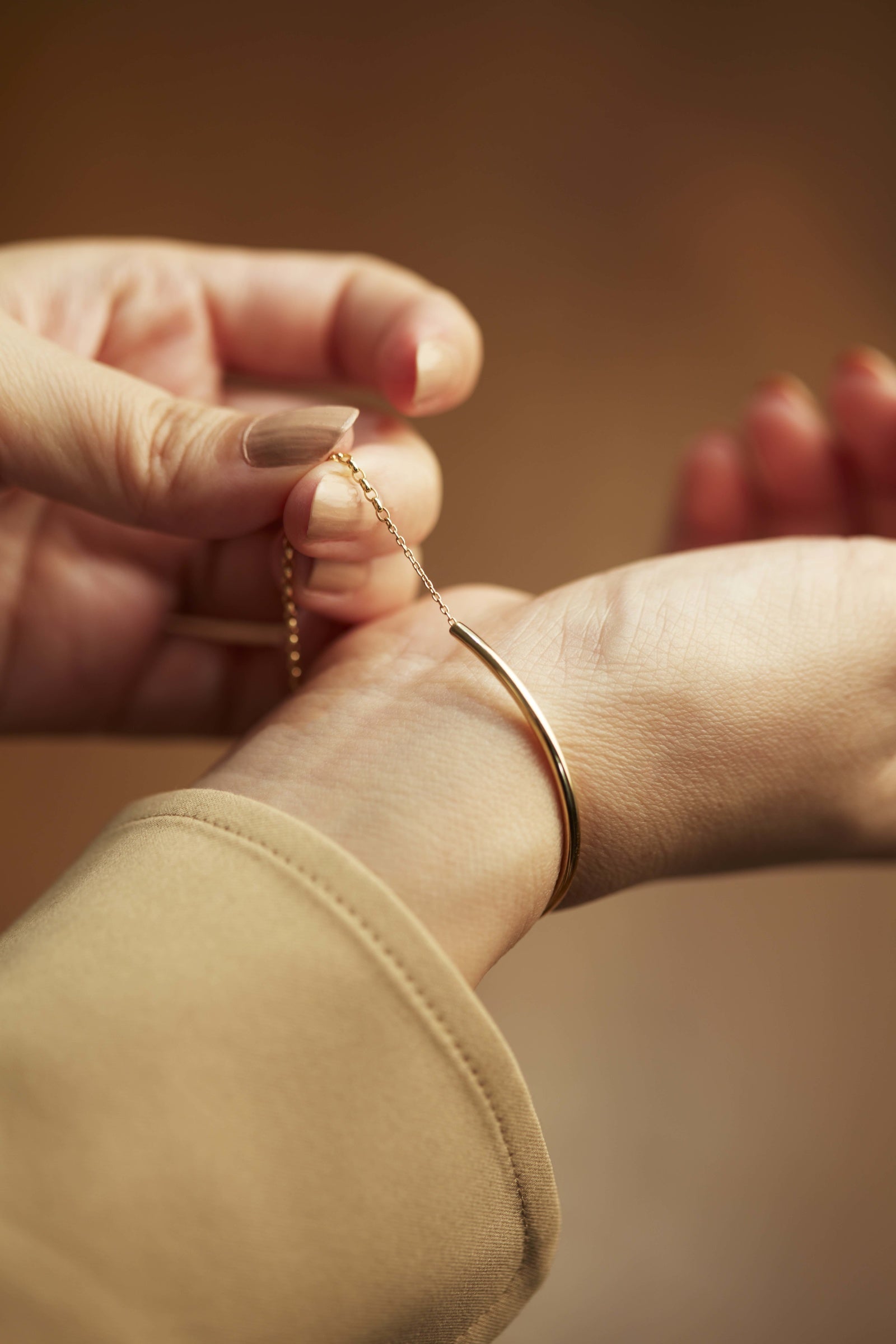 手元のむくみにも対応できるよう“伸びる機能”を持つ、スタイリッシュなブレスレットとリングで、むくみが気になる日にもストレスなくジュエリーをお楽しみいただけます。