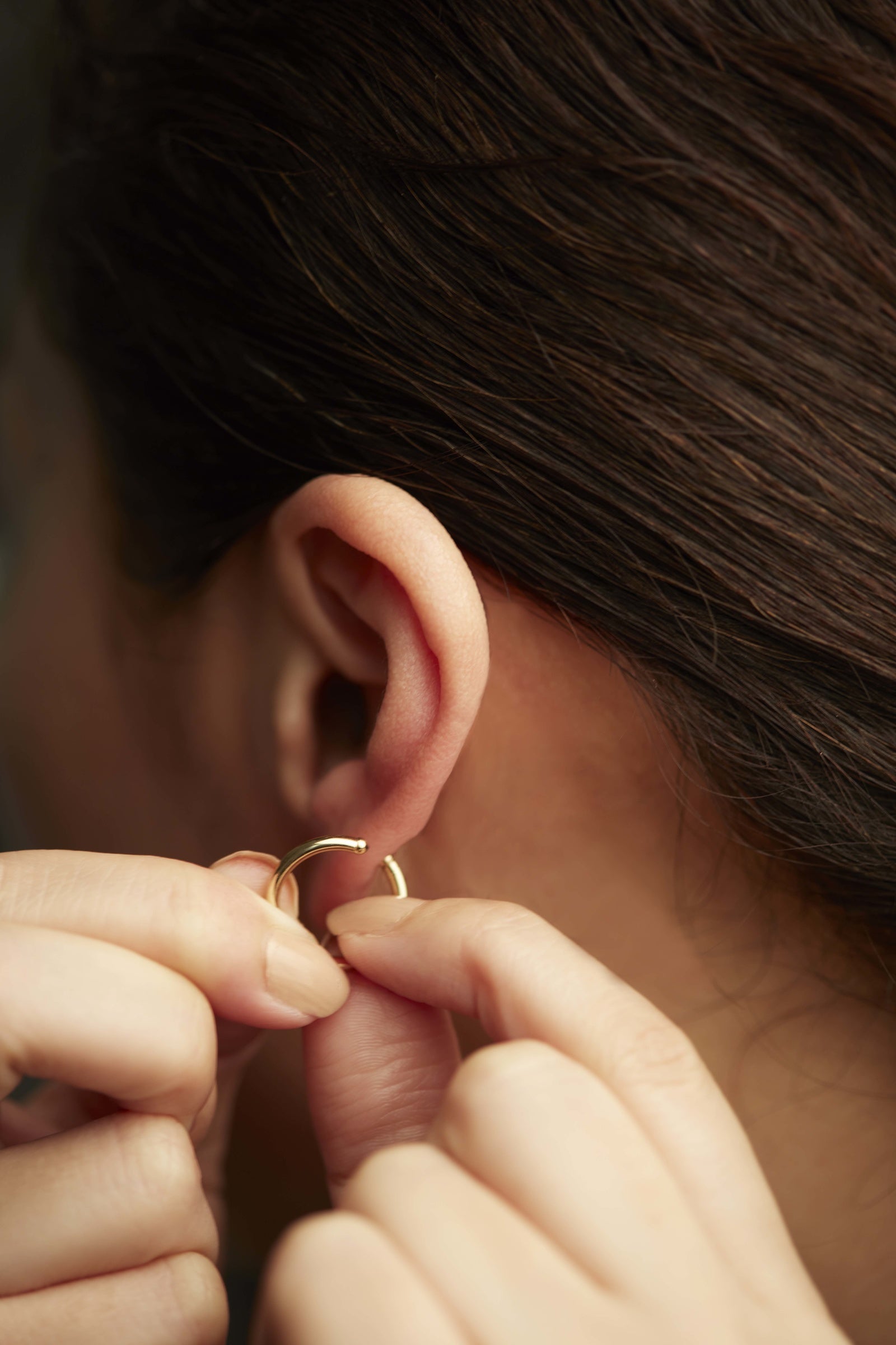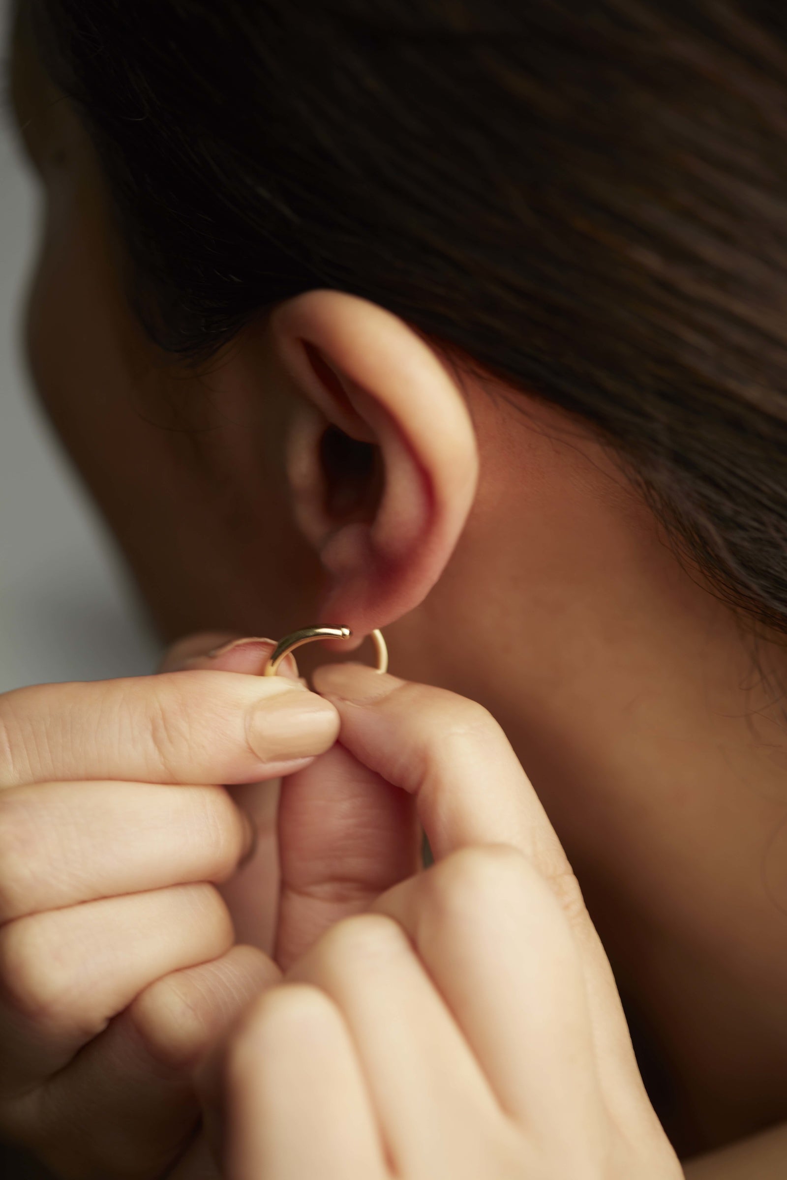 パーツの形は人それぞれ。どんな耳の形でも痛みを感じることなく無く着脱できる、捻りを加えたイヤカフ。