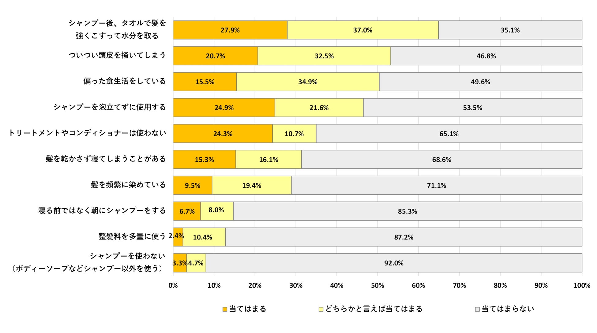 「頭皮を掻く」「偏った食生活」も2人に1人が当てはまると回答