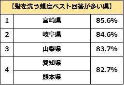 次いで岐阜県(84.6%)、山梨県(83.7%)と続き、いずれも80%を超えており、洗髪への理解度が高い様子がうかがえます。