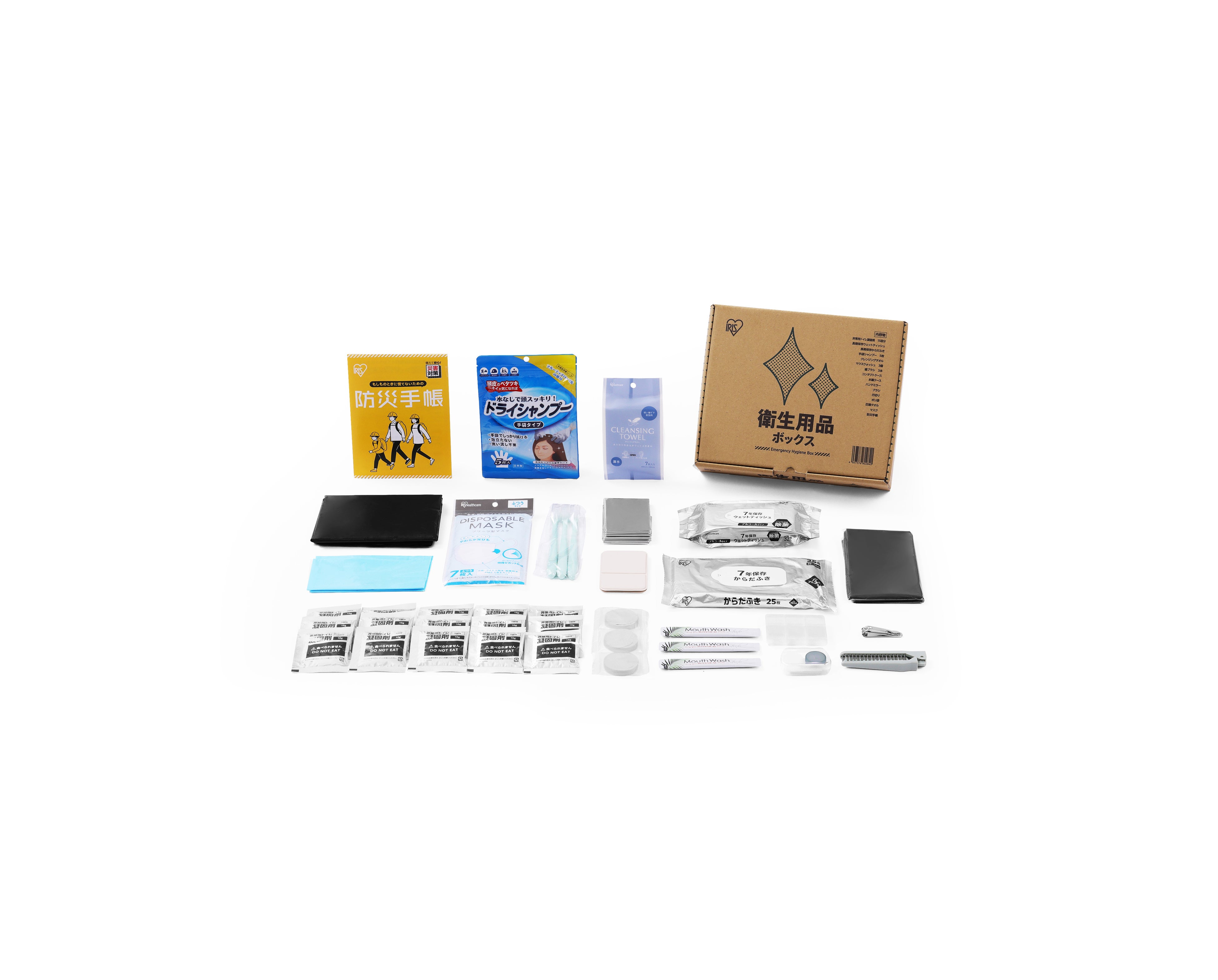 「基本の防災リュック」「衛生用品ボックス」「防災家電ボックス」