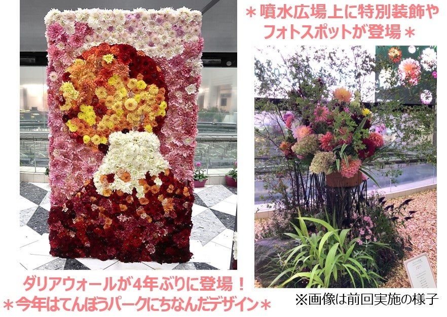 会場のステージ上では、“新たな眺望体験を提供する空の公園”をコンセプトに今年春にオープンした「サンシャイン60展望台 てんぼうパーク」をイメージした “ダリアパーク”をテーマに装飾し、ダリアの色・花型・大きさのバリエーションの豊かさを感じていただけます。