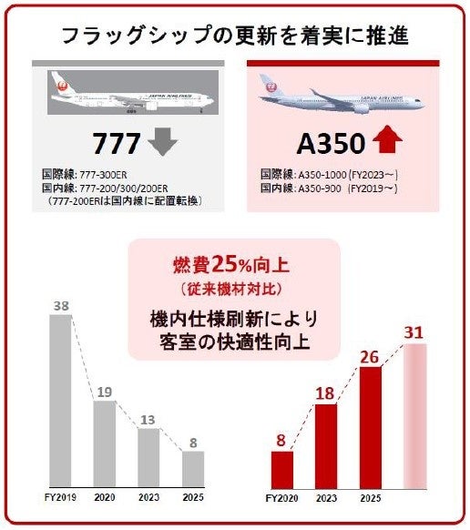 JALは、本フレームワーク及び2022年2月に公表済の「トランジションボンド・フレームワーク(*4)」の両枠組を活用したファイナンスを実行することで、今後も省燃費性能の高い最新鋭機材への更新を積極的に行い、航空輸送事業におけるトランジションの推進と最終的な脱炭素化に向けた取り組みを加速していきます。