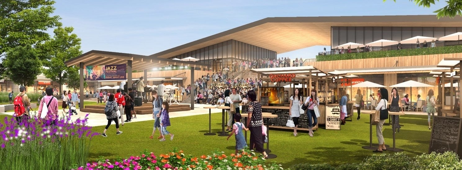 当施設では、アウトレットショッピングを楽しんでいただけるバリエーション豊富な約170店舗が集積するほか、緑豊かな屋外広場を整備するなど居心地の良い環境創出をいたします。また、CO2排出量の削減など、持続可能な社会の実現にも取り組んでおり、開業に向けて引き続き推進してまいります。