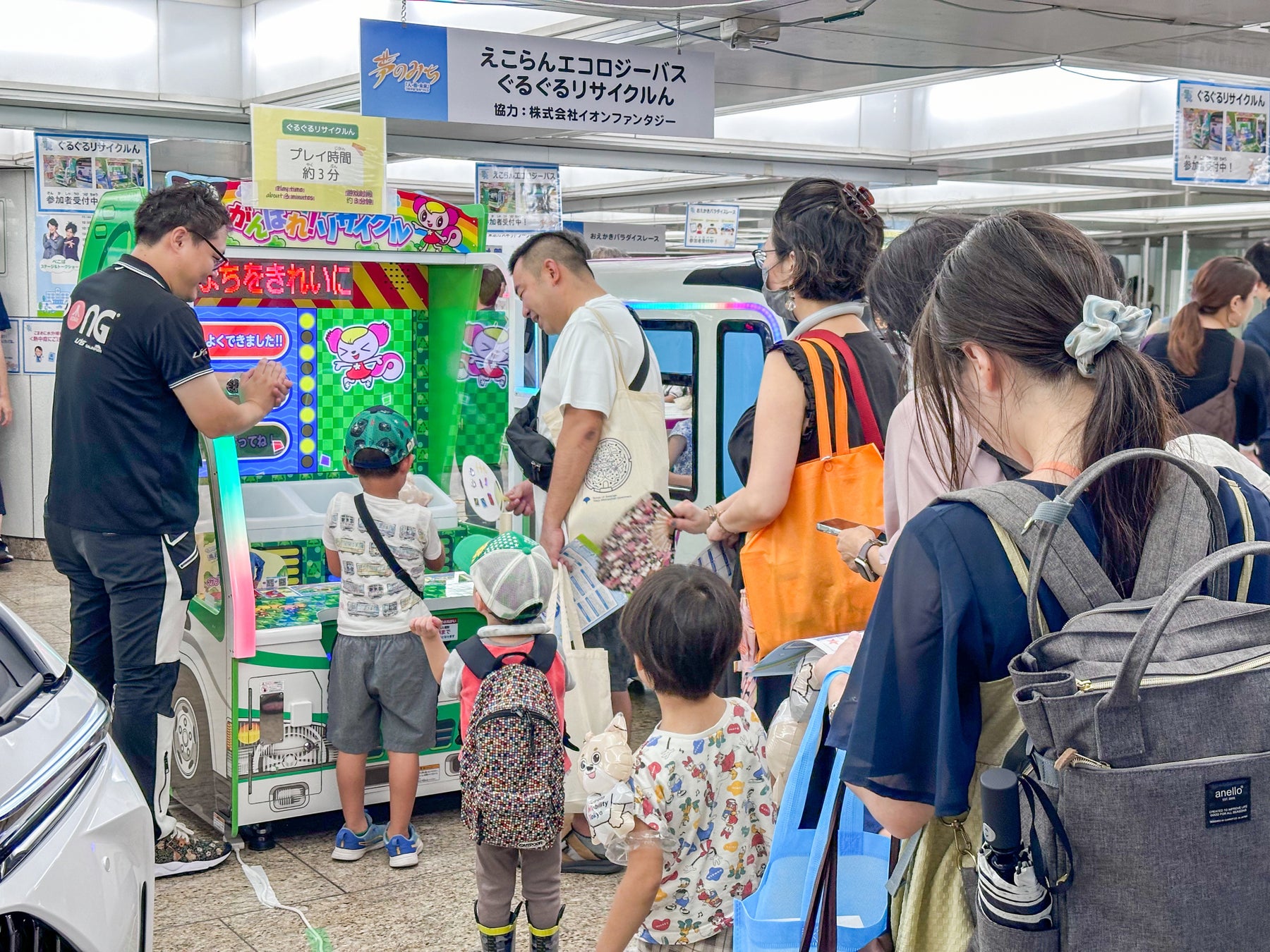 株式会社イオンファンタジー(本社:千葉県千葉市、代表取締役社⾧:藤原徳也、以下、当社)は、サステナビリティ経営実現の一環として、地域のこどもたちに、環境問題に関するあそびとまなびの機会を提供する取り組みを進めています。本取り組みは、こどもたちの環境への関心を高めることが、次の社会の地球環境を変える一歩につながるという想いのもと2022年からスタートしたもので、3年目となる本年は新宿駅(東京都)で9月22日(日)に開催された「夢のみち」2024に、環境をテーマにしたオリジナルエデュテイメントゲーム「ぐるぐるリサイクルん」「えこらんエコロジーバス」を出展いたしました。