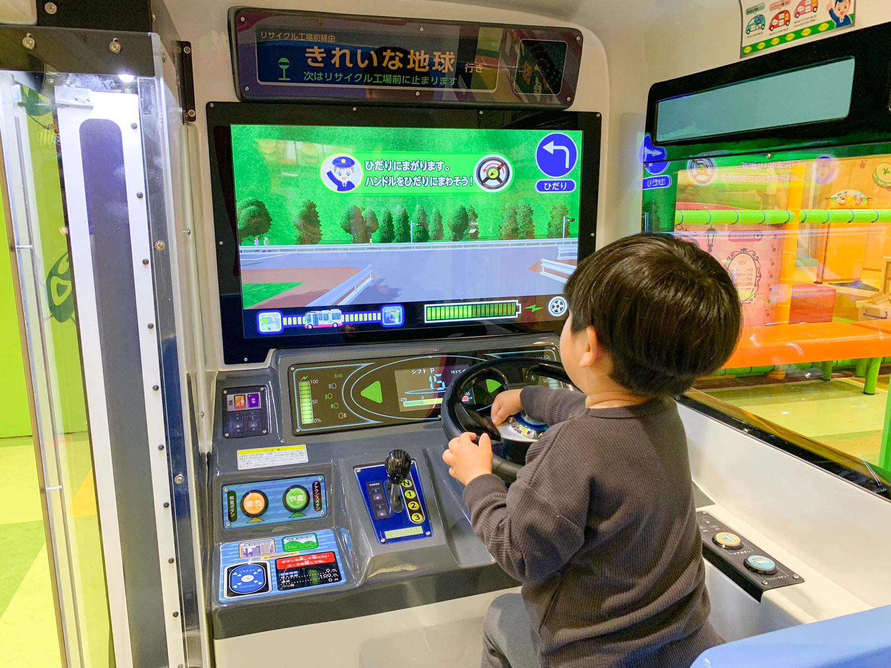 バスの運転をしながら、様々な環境にやさしいエコ自動車について学べるキッズ向けエデュテイメントゲームです。バスに乗り込む前にエネルギーをチャージし、画面に沿って運転操作をして街や山の中を走ります。ゲームの最後にはエコ運転度の結果発表や、エコ自動車についての豆知識の紹介もあります。