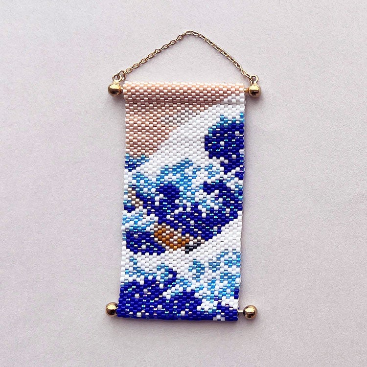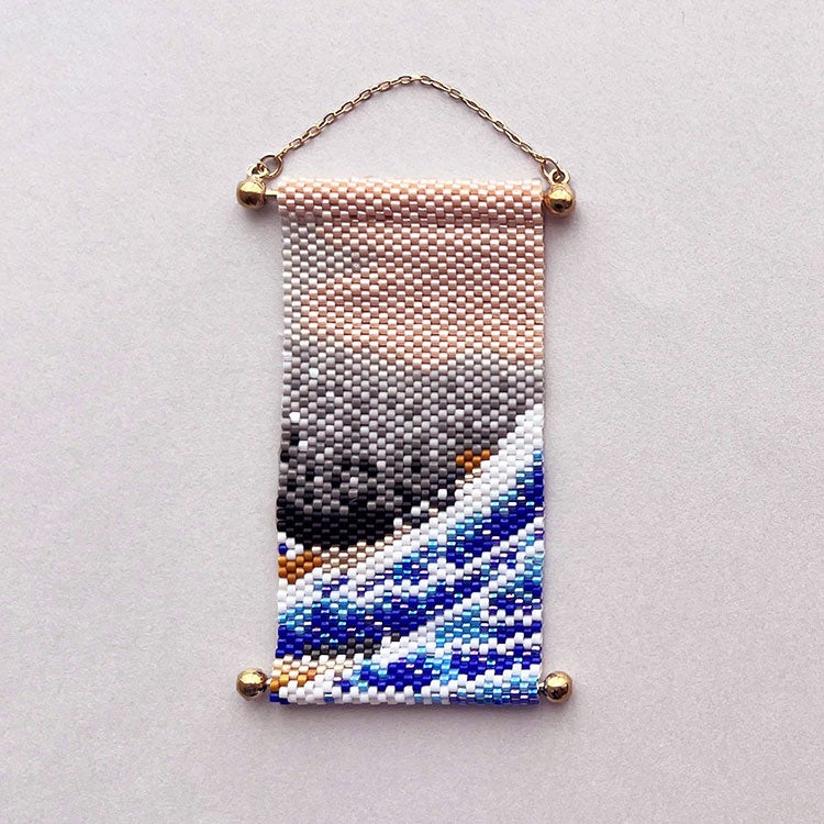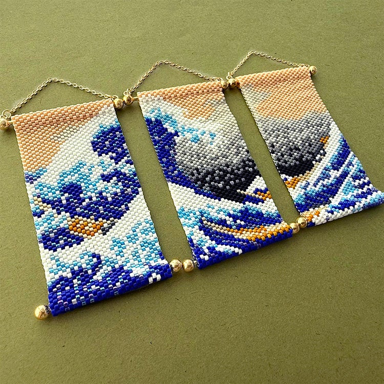 デリカビーズを使って、波のうねりやしぶき、奥行きのある構図を緻密に再現しました。
