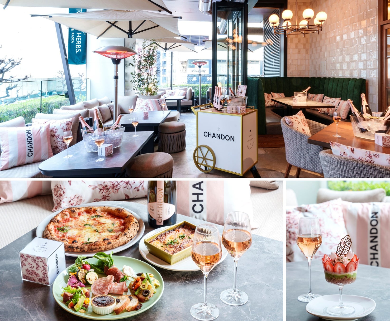 株式会社フォーシーズ(東京都港区南青山 代表取締役会長 兼 CEO:淺野幸子)が展開するイタリアンレストラン『TO THE HERBS (トゥ・ザ・ハーブズ) 渋谷店』(所在地:東京都渋谷区宇田川町4-3 lyf渋谷東京2階)では、2025年4月20日(日)までの期間限定でプレミアムスパークリングワイン「シャンドン ロゼ」を楽しめる「テラス限定セット」を販売致します。