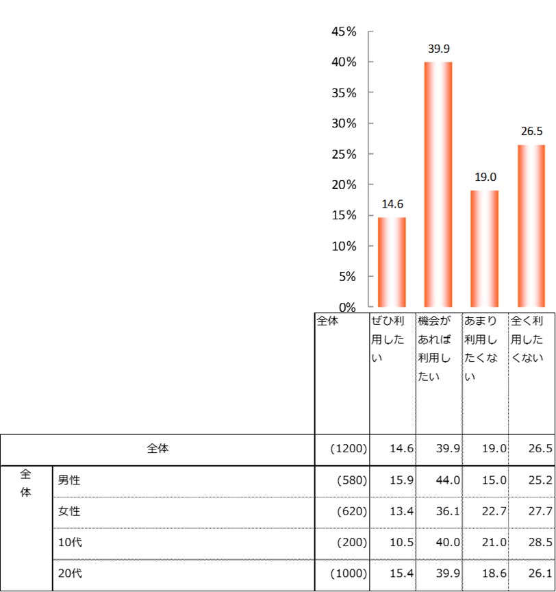 空飛ぶクルマや自動運転車などのモビリティ技術を「機会があれば利用したい」が全体の約4割