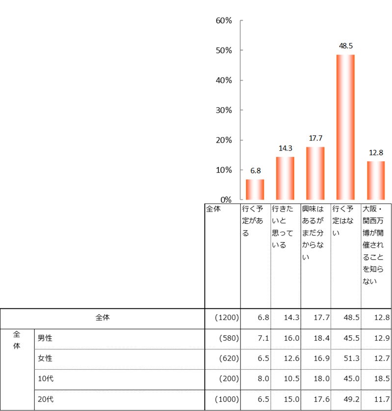 大阪・関西万博へ「行く予定はない」が全体の48.5%を占める一方、38.8%が興味を持っている