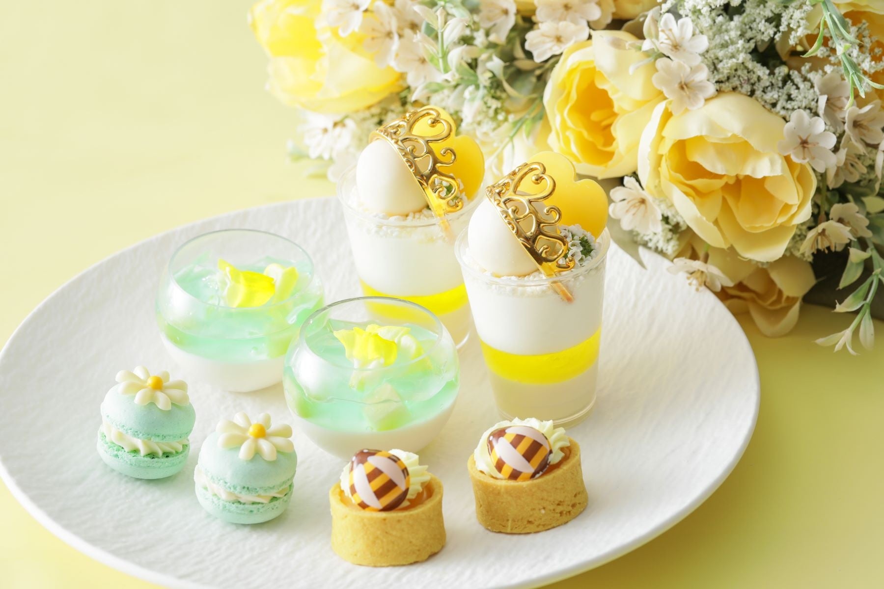 (上段)レモン&ヨーグルト ヴェリーヌ/カルピスパンナコッタ&メロンジュレ/メロンマカロン/レモンタルト