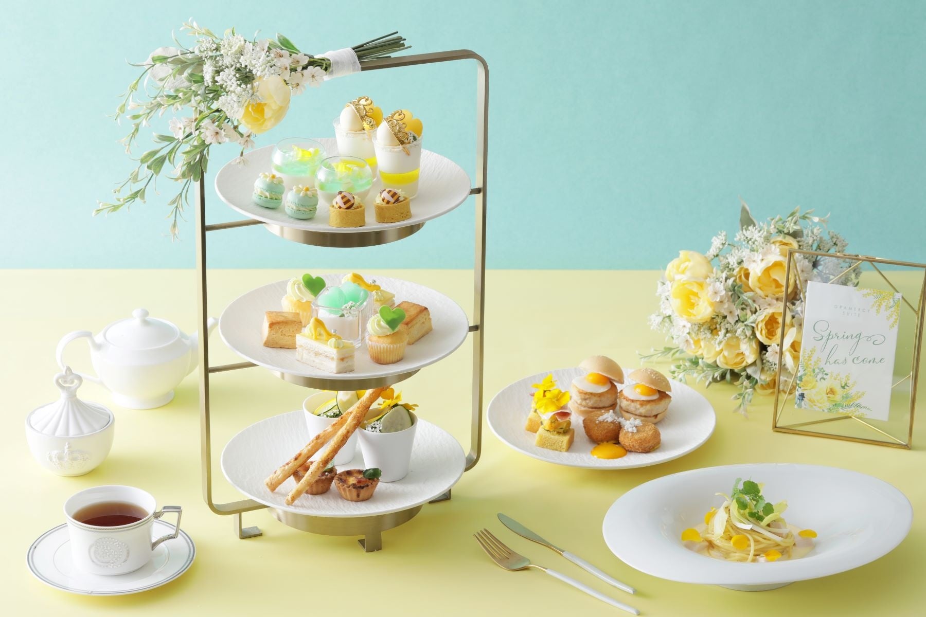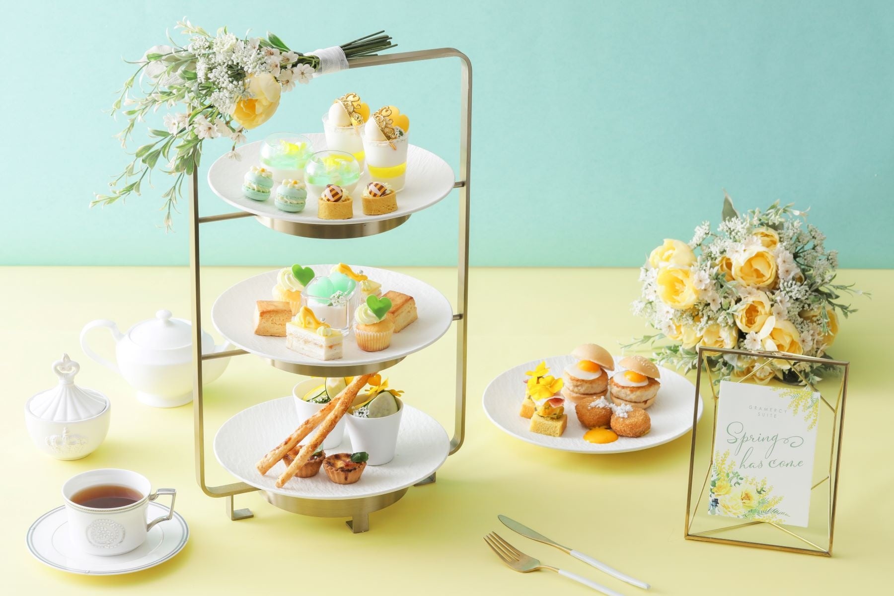 レモンとメロンを使用したスイーツ8種と、総料理長監修のセイボリー&軽食6種の充実ラインナップ!「グラマシーアフタヌーンティー~Spring Collection~」新発売