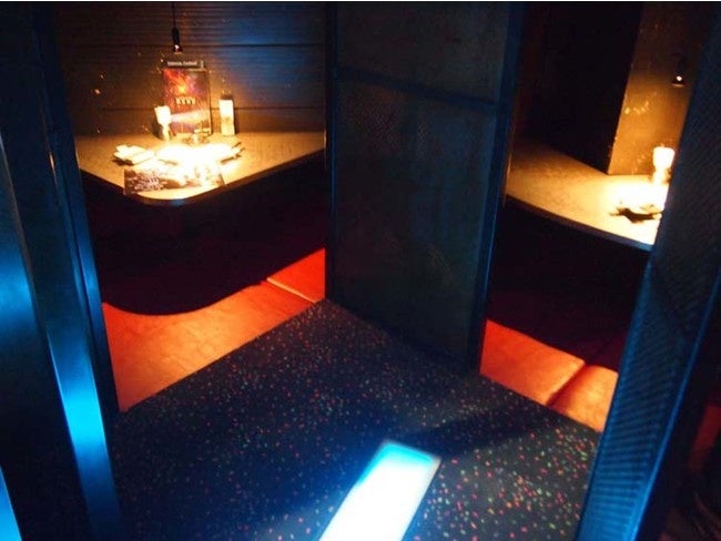 近未来の宇宙をテーマにしたダイニングバー「ミステリアス」。地下にある店に一歩足を踏み入れると20XX年、近未来の宇宙空間が広がります。 店内には数々の星が幻想的な世界を彩り、コックピットの中にいるような、宇宙空間にいるような、まさにミステリアスな雰囲気の非日常空間に誘われます。