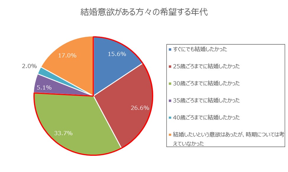 ・20代、3人に1人が「25歳まで」に結婚したい。「25歳まで」の結婚希望率は30~50代よりも高かった