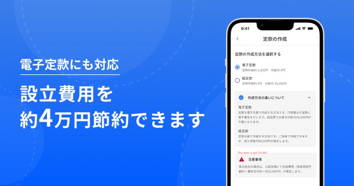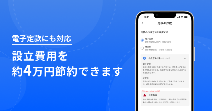 ・電子定款に対応し、設立費用を約4万円抑えることが可能