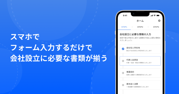 ・ iOS / Androidに対応。いつでもどこでも会社設立をはじめられます