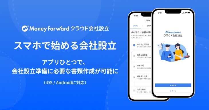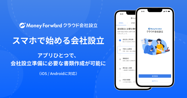 株式会社マネーフォワードは、会社設立・定款作成サービス『マネーフォワード クラウド会社設立』の、iOS版、Android版スマートフォンアプリの提供を開始します。これにより、会社設立に必要な書類をスマートフォンアプリ上で作成できるようになります。